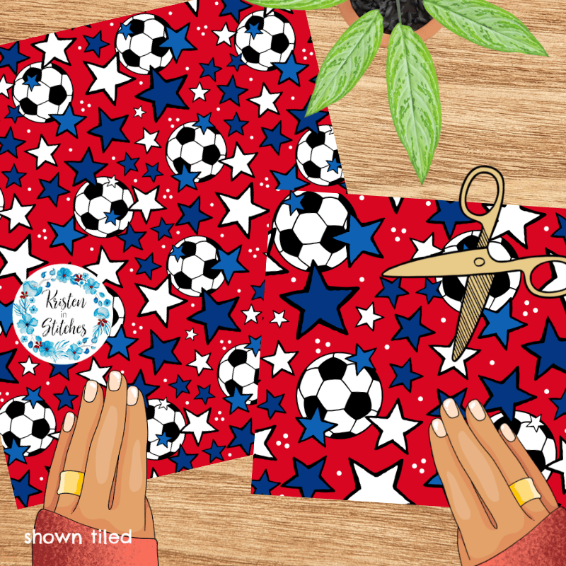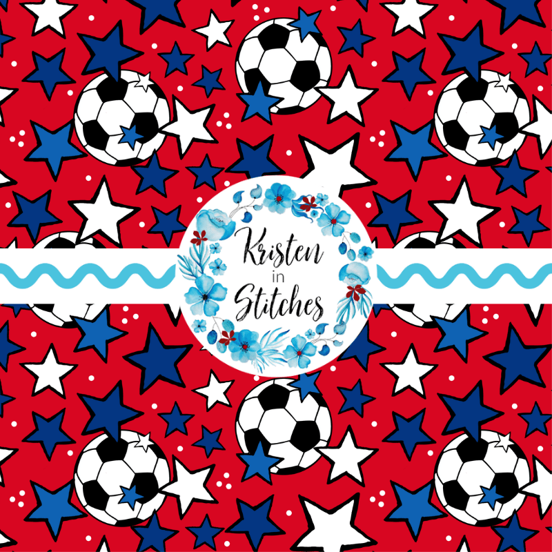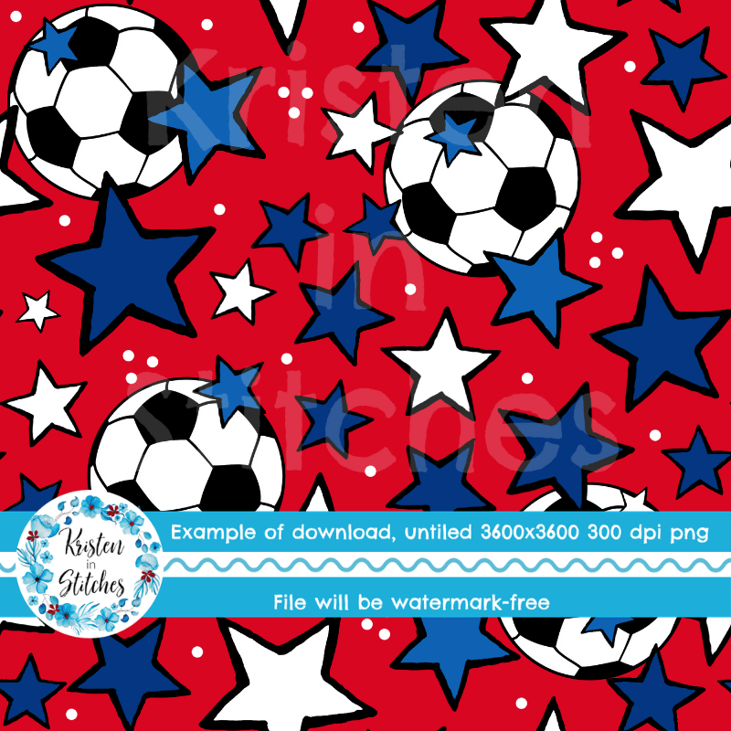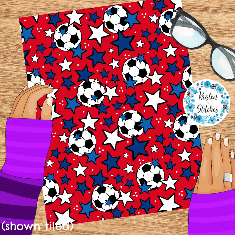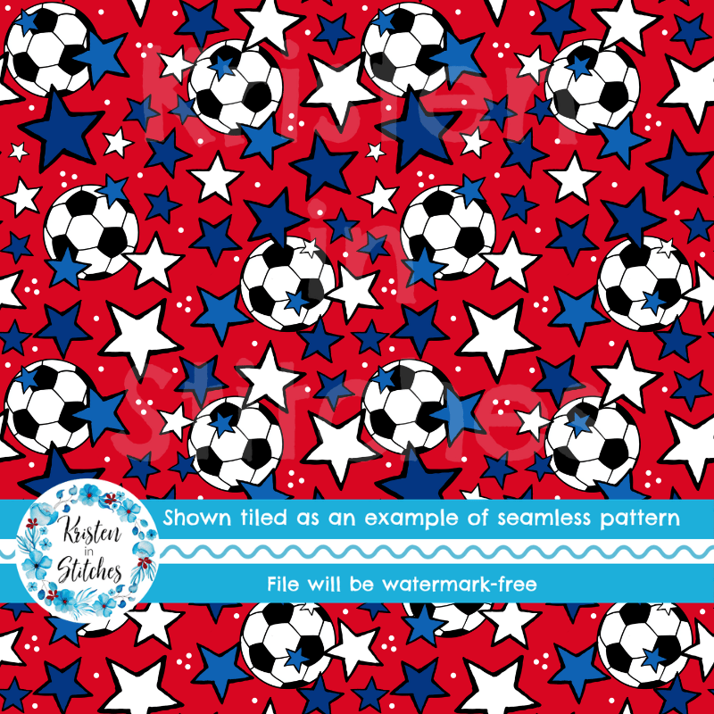 Soccer Balls and Stars Seamless Pattern, Team USA, Red White and Blue