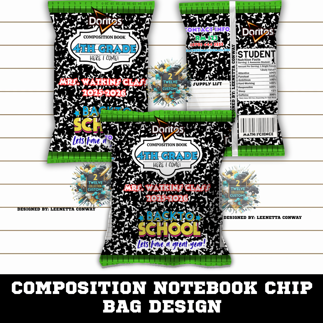 Composition Notebook Chip Bag Design Canva Template | Digital Download