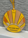 Sunshine design, included is blank versions of the hole and no hole circle & no hole square, and also the quote versions in both shapes "you are our sunshine" "you are my sunshine" "be your own sunshine" "brighter days are coming" Also includes faces to add if you wish