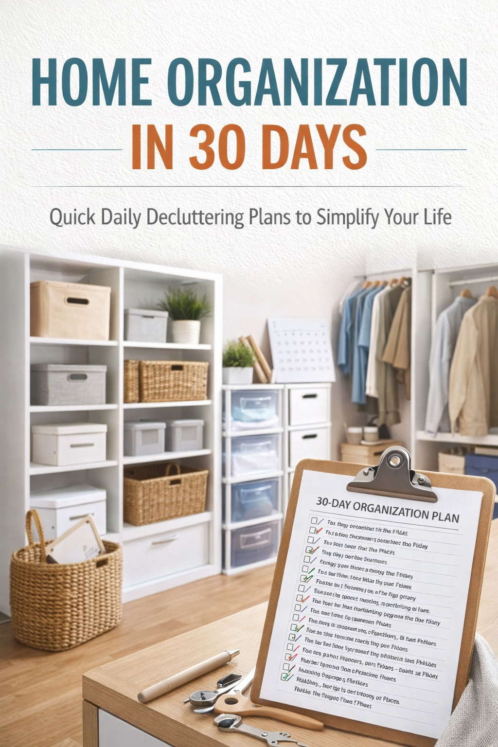 Unlock your creative potential with this comprehensive 16-page PDF guide in how to declutter and organize your home. Learn what to keep, what to sell and what to give to charity, plus pro tips to confidently turn your home into a organized place in 30 days