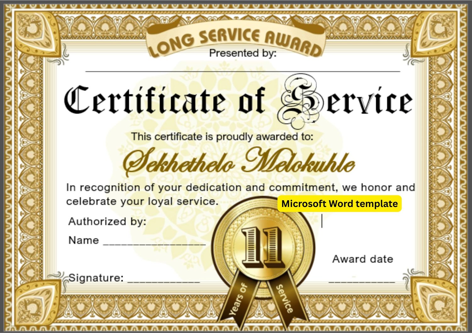 11 Years of service | Editable Microsoft Word template | Landscape G0103L110011