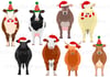 8 Cows with Christmas Hats and Scarves Clipart Set