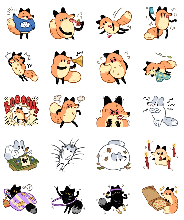 Cute foxes, cats, bunnies, wolves, raccoons, and animal friends