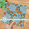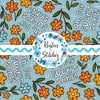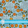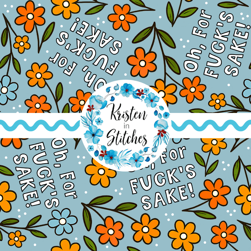 Oh, For Fuck's Sake! floral pattern with orange, yellow and blue daisy flowers.