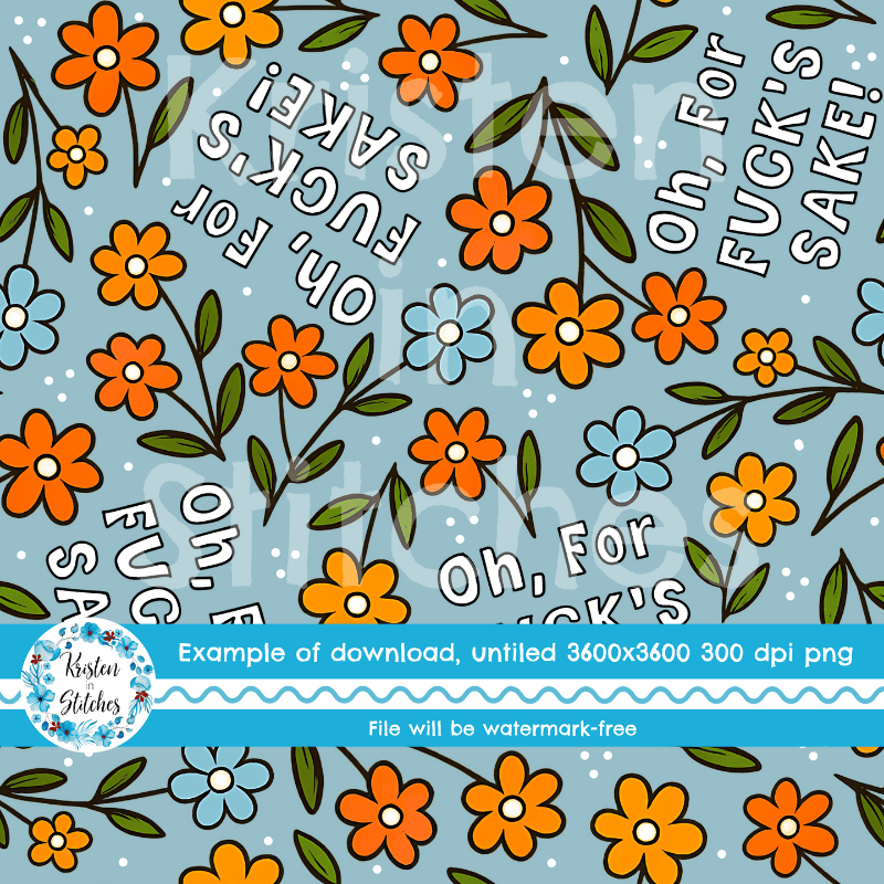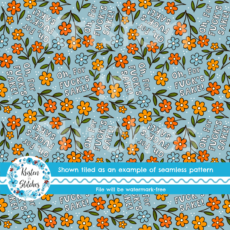 Oh For Fuck's Sake Swear Word Seamless Pattern, Pretty Profanities, Daisy Flowers