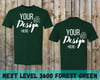 Front and Back Forest Green Tshirt Mockup, Forest Green Next Level 3600 T-shirt MockUp, Dark Wood Background, Instant Download