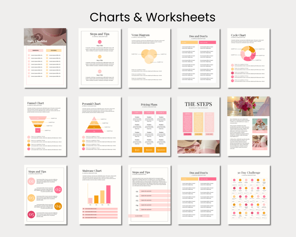 Everything you need to create a beautiful, professional Ebook or Workbook your audience will love!