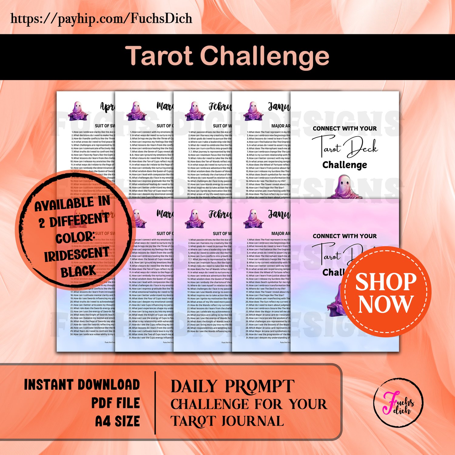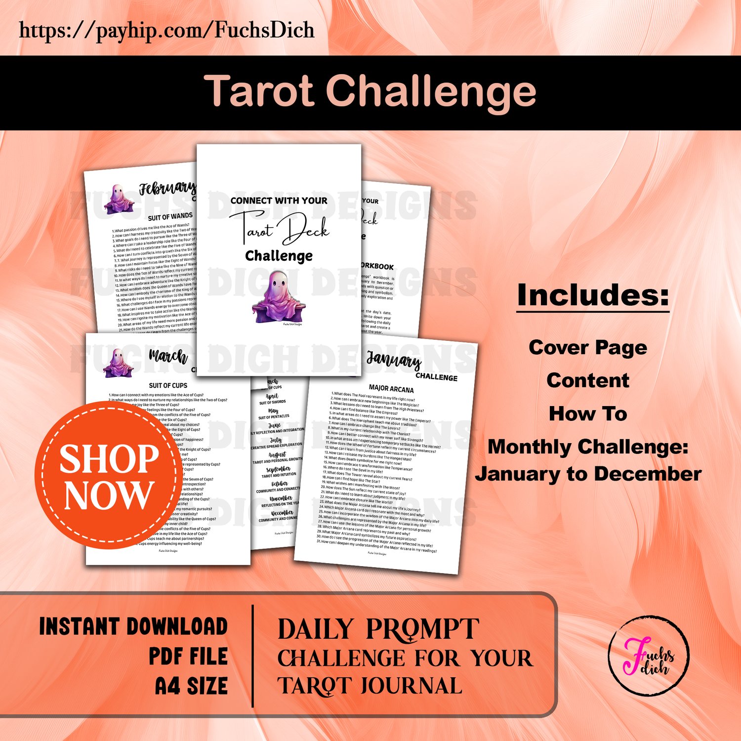 Introducing the "Connect with Your Tarot Deck Challenge" workbook! This engaging resource is designed to deepen your relationship with tarot through daily prompts and monthly themes, covering all 78 cards. Each day invites you to reflect, journal, and explore different aspects of your deck, fostering a deeper understanding of its meanings and your personal intuition. Whether you're a beginner or an experienced reader, this workbook offers a structured yet flexible approach to enhance your tarot practice throughout the year. Start your journey of self-discovery and connection today! One question for each day!