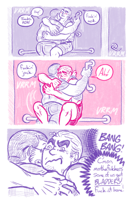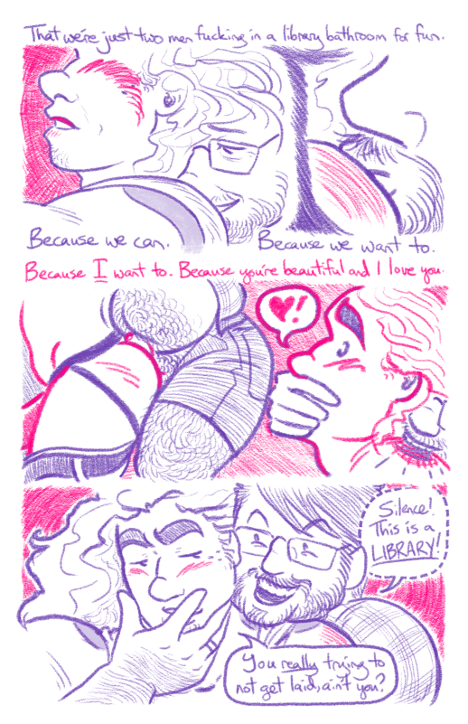 "A sexy comic about getting it on in a public bathroom... because you have no better place to get it on." --Wolffyluna
