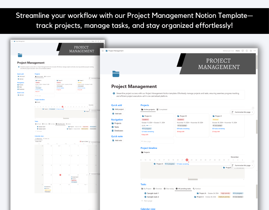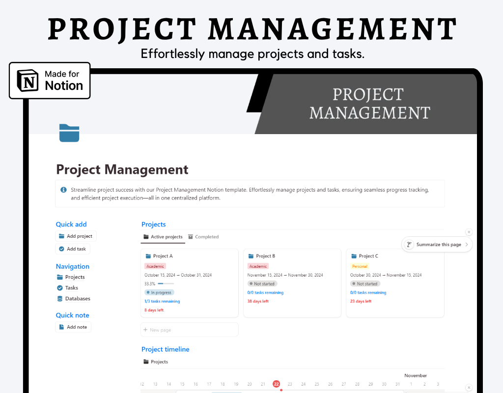 Stop feeling overwhelmed and start getting things done. Our Project Management Notion Template is here to help you effortlessly organize and manage your projects from start to finish.