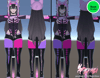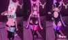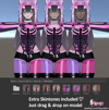 - Toggles: Shirt, Bodysuit, Shorts, Panties, Boots, Socks On, Fishnets, Hat, Ears, Tail, Horns, Bones, Choker, Shorter Sleeves, Follower, Avatar Contacts, Normal Legs, Lipstick Off
