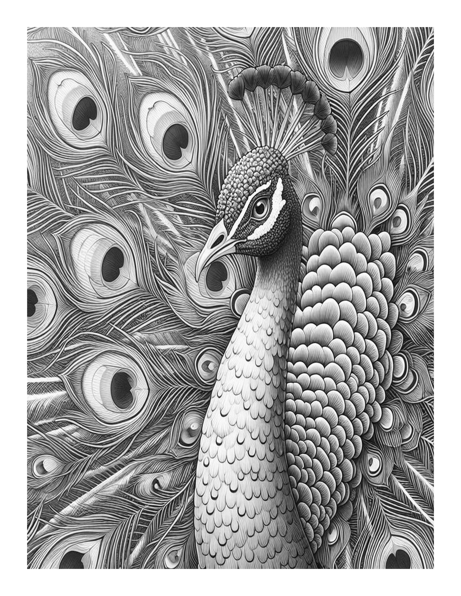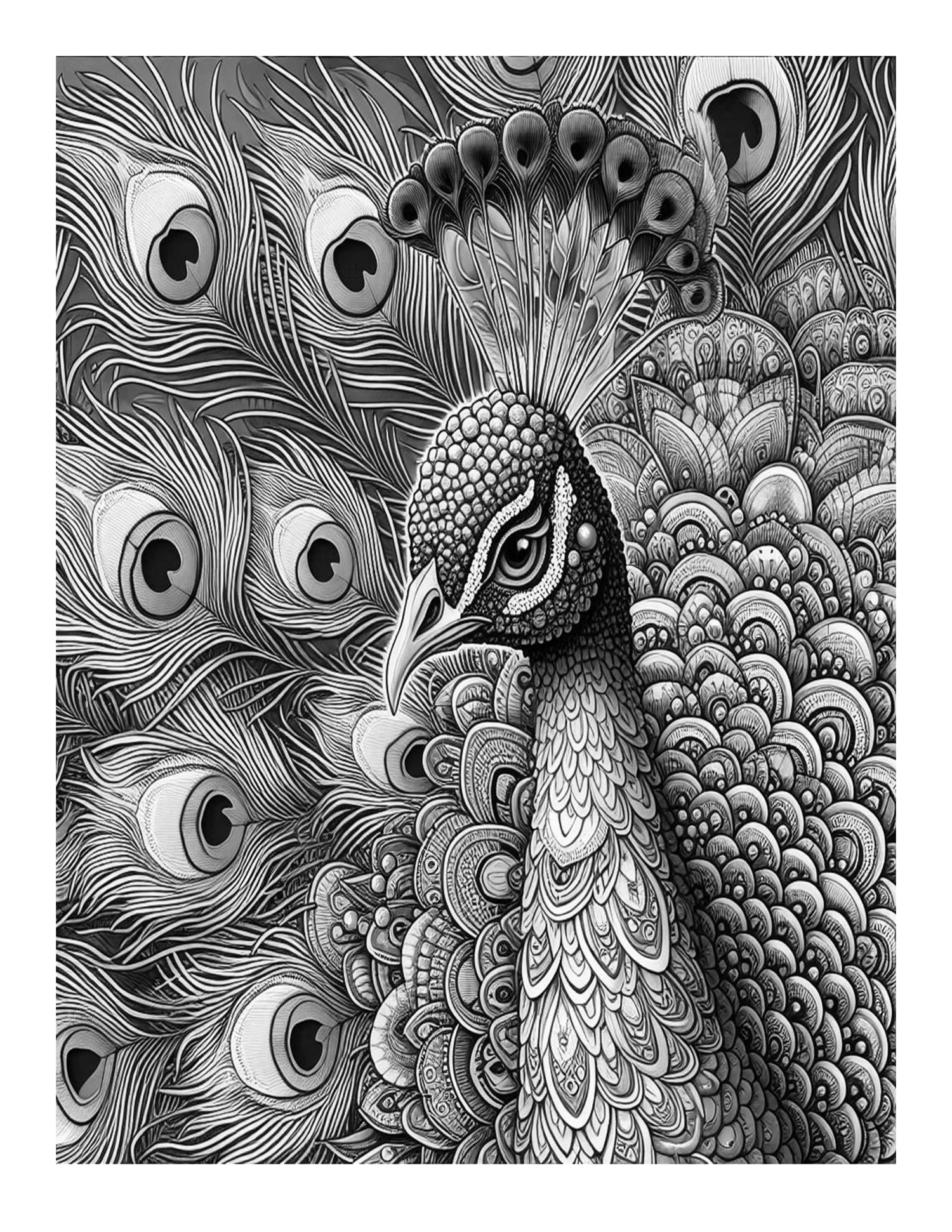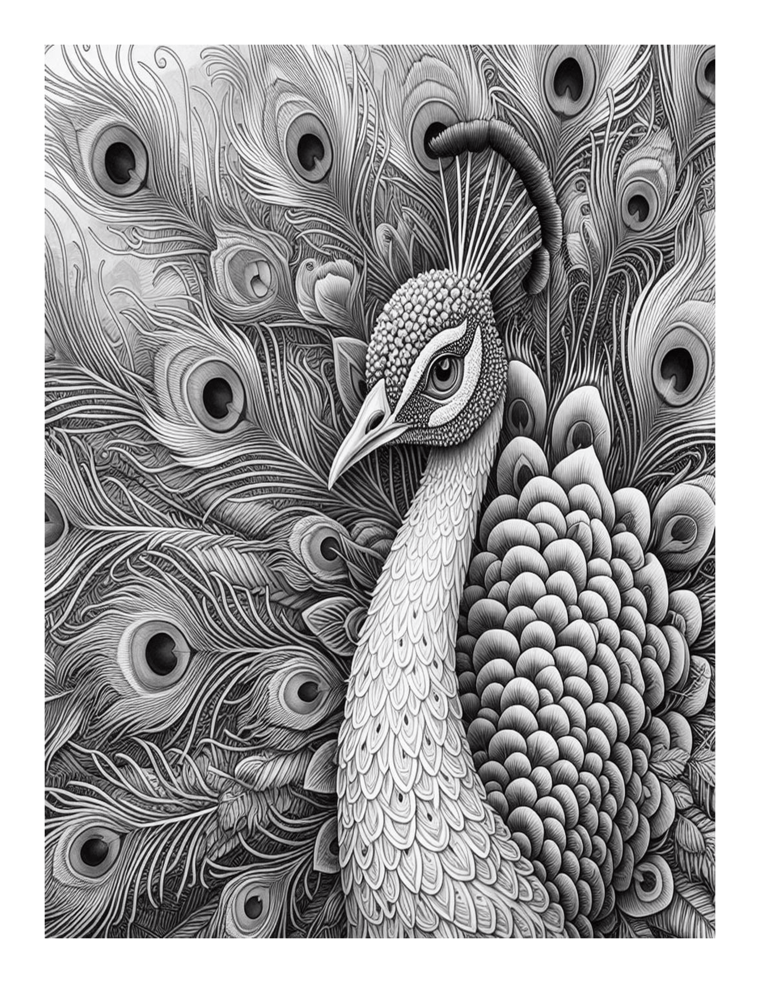 Beautiful Grayscale Peacock Coloring Pages for Adults to enjoy Coloring for Stress Relief