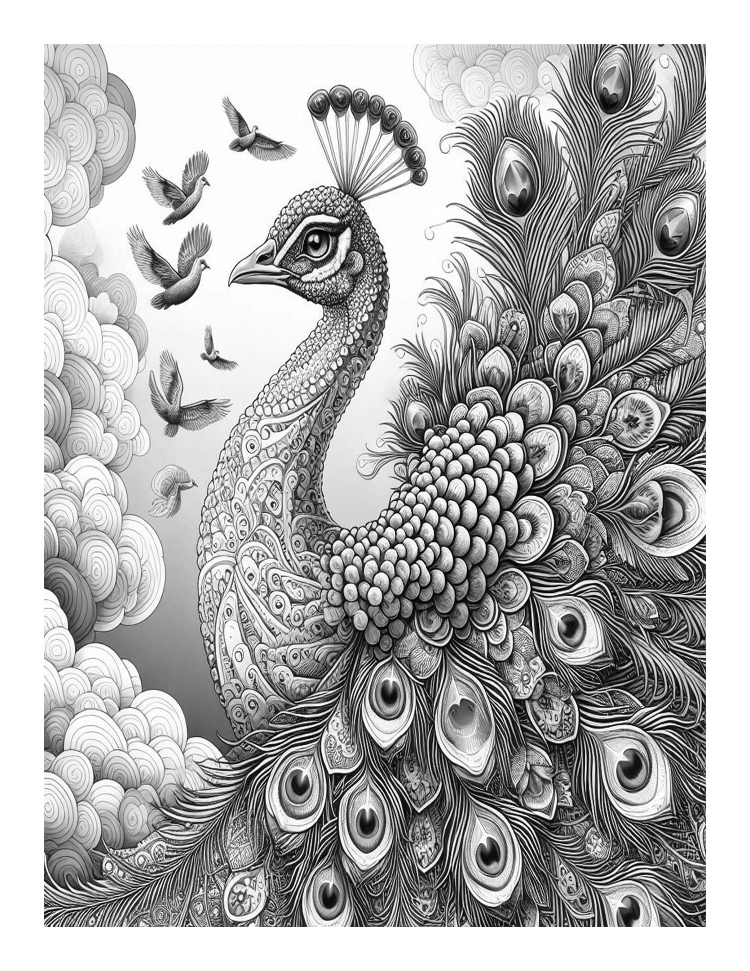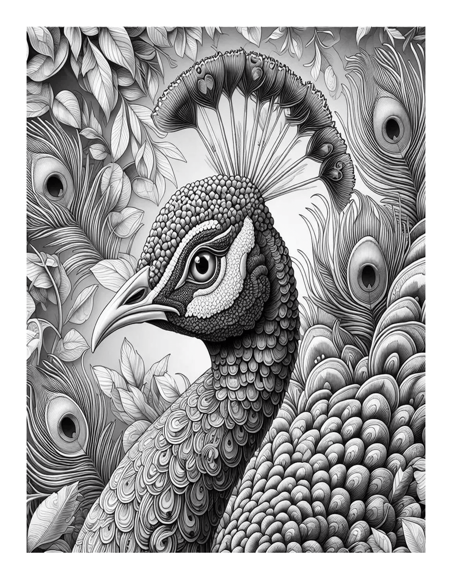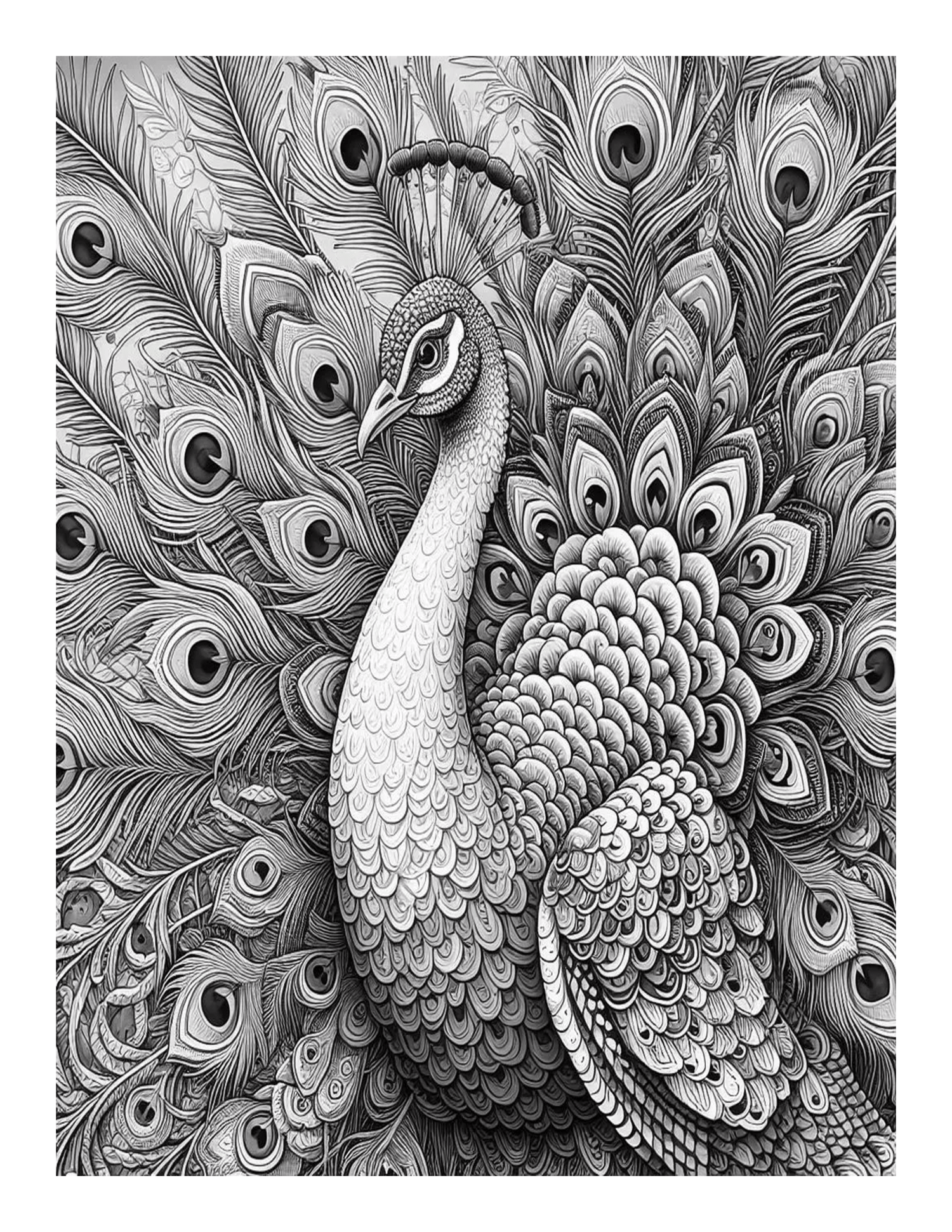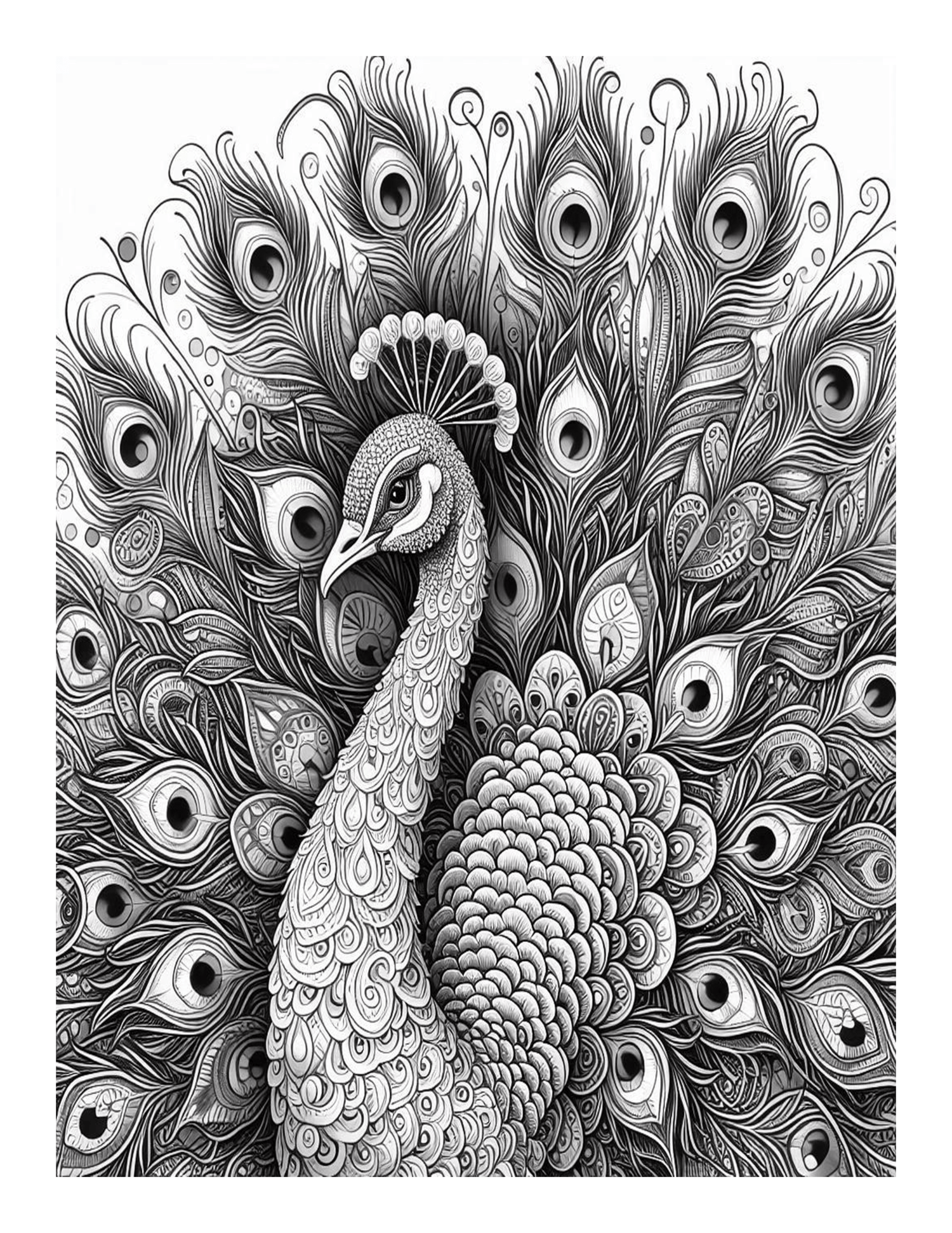 Beautiful Grayscale Peacock Coloring Pages for Adults to enjoy Coloring for Stress Relief