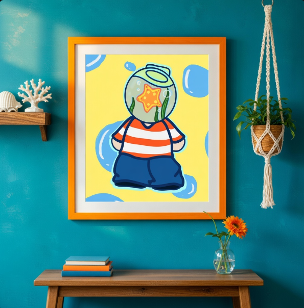 “Bowl Head” is a character that represents the beauty of being goofy, vulnerable, and unapologetically oneself. His glass bowl head symbolizes transparency and emotional openness—what is inside him is visible to the world. Rather than hiding his thoughts or feelings, Bowl Head allows others to see them, reminding us that vulnerability is a natural and healthy part of being human. Through Bowl Head, the artwork embraces the idea that showing who you truly are—your silliness, emotions, and inner world—is normal and good. It celebrates self-acceptance and encourages people to see vulnerability as strength, not something to be ashamed of.