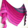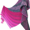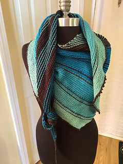 Mostly garter with some slipped stitches, BTTF lets the beautiful yarn do most of the work, as the repeats are learned quickly. A picot bindoff completes the final color. There is also a chart to keep track of stitch numbers if you like that kind of thing.