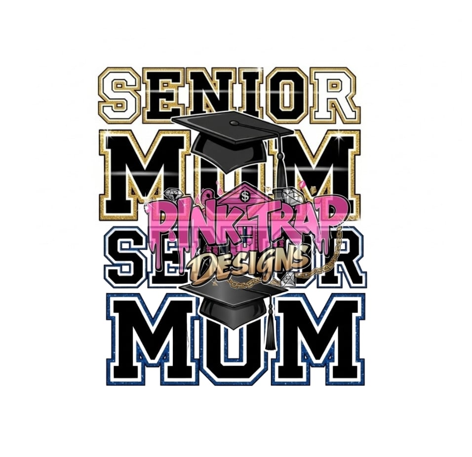 Celebrate graduation in style with this “Senior Mom” PNG design! Perfect for t-shirts, hoodies, mugs, stickers, and more, this design features bold varsity-style letters in black and white with a glittery pink outline. The word “MOM” includes a fun graduation cap sitting at an angle on top of the “O,” adding a playful and festive touch.