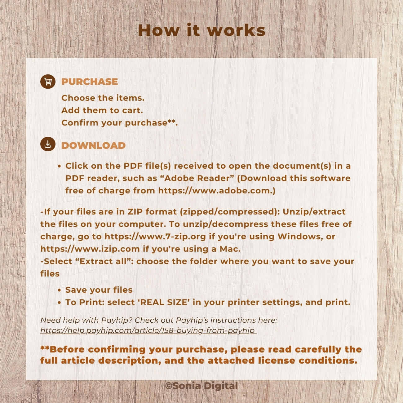 🔸 The colors of the items may vary slightly depending on the computer/tablet/smartphone screen, the quality of the printer/type of paper you decide to use.