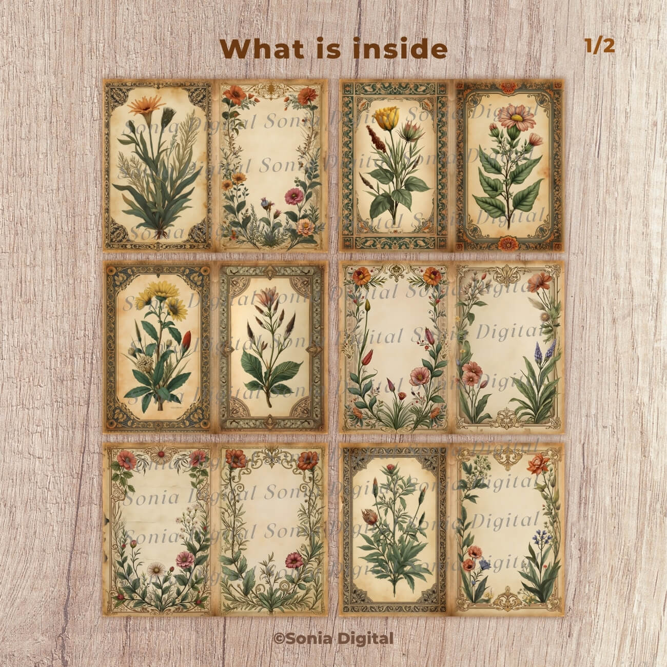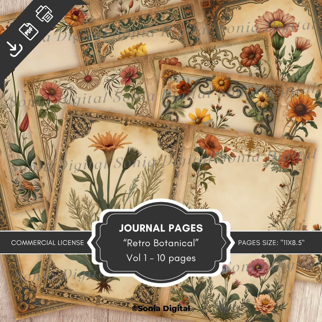 10 printable Journal Pages, “Retro Botanical” Collection (Vol 1), for Scrapbooking and Junk Journal creations. Letter size (11”x8.5”). Commercial use license included*
