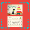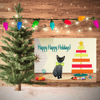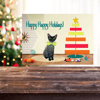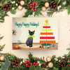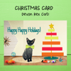 Christmas Holiday Card! Retro/midcentury modern with black Devon Rex Cat! Instant download w/ unlimited uses! Envelope template included.