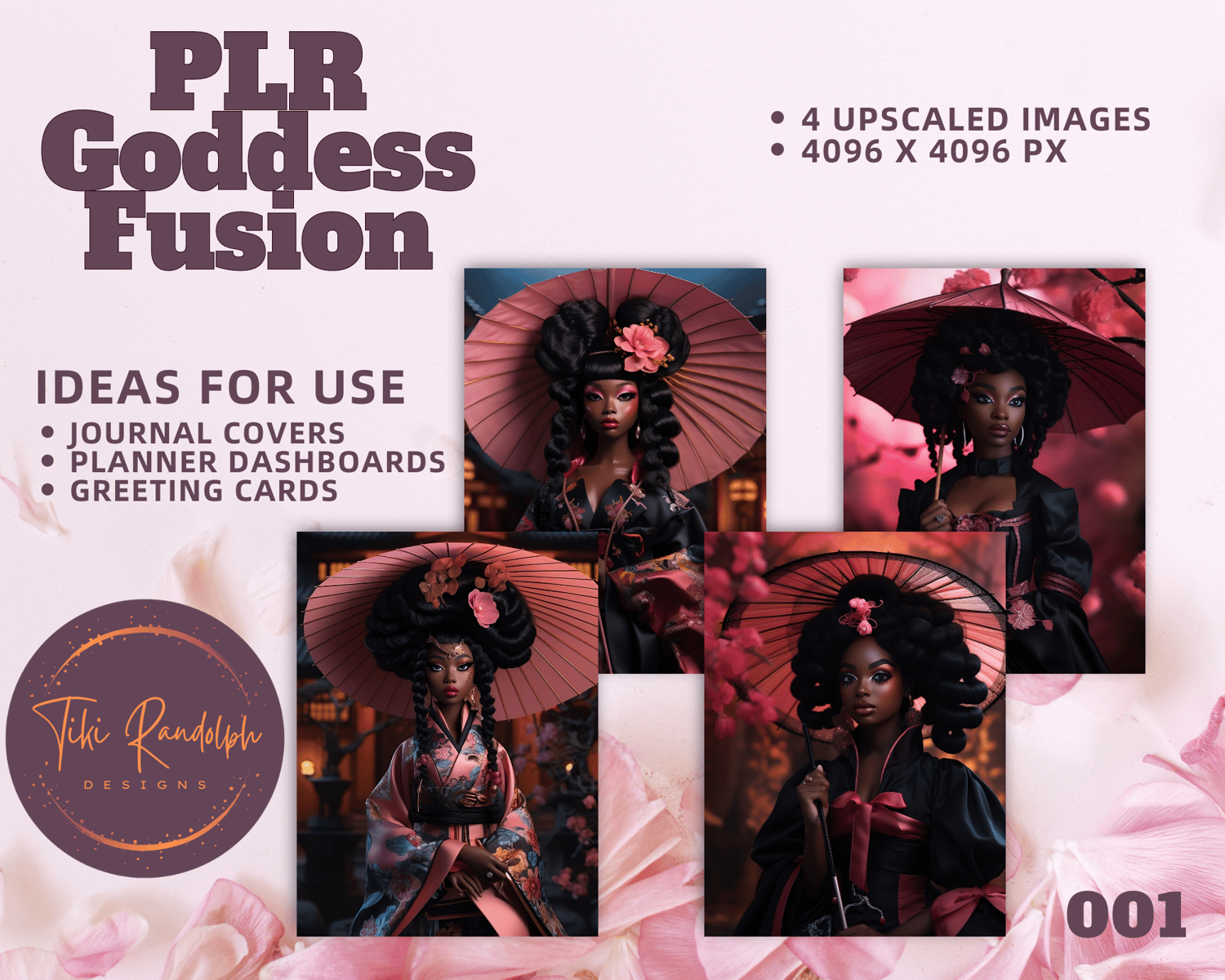 Step into a realm where ethereal beauty meets harmonious diversity. Introducing "Goddess Fusion," an enchanting collection of PLR images celebrating the elegance of melanin goddesses with an alluring Asian flair.