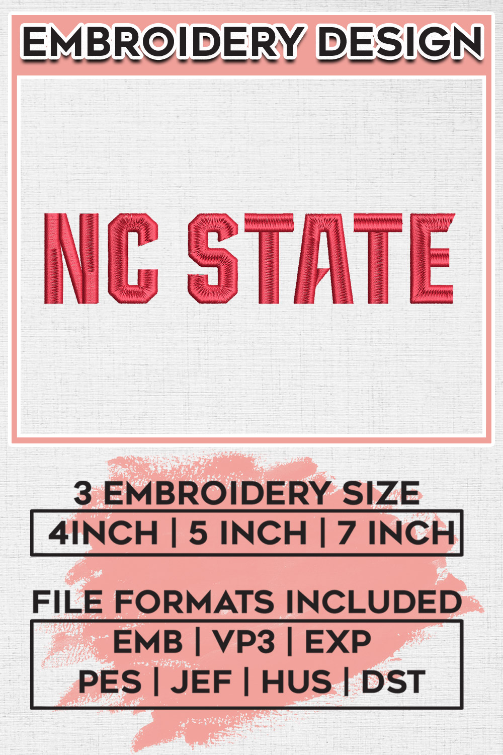 NC State Team Writing Logo Embroidery Designs, NCAA NC State Wolfpack Machine Embroidery Files, NCAA Logo embroidery designs, Ncaa Wolfpack Logo, Digital Download