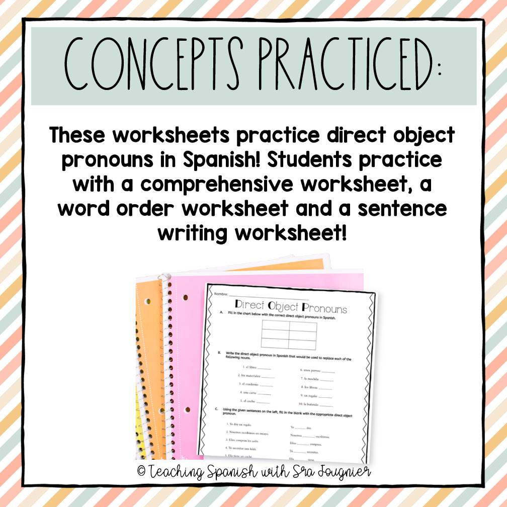 Editable Spanish Direct Object Pronouns Worksheets Digital Printable Sub Plans
