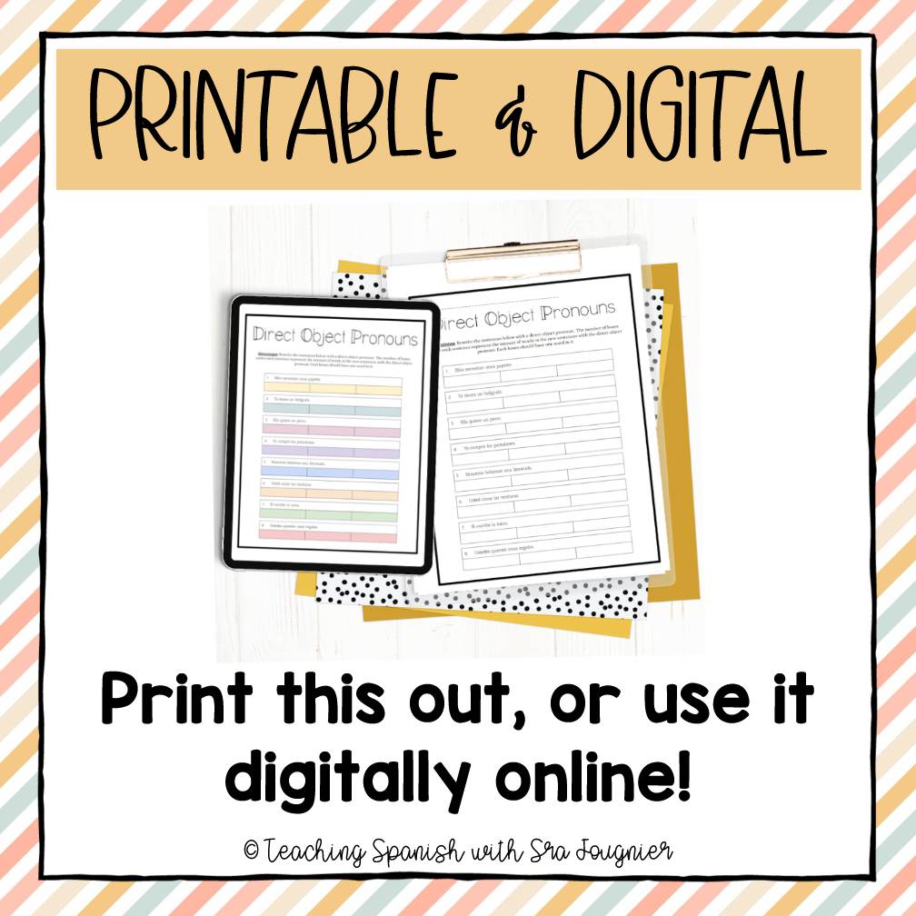 🎯 Spanish Direct Object Pronouns Practice | Editable + Digital + Printable