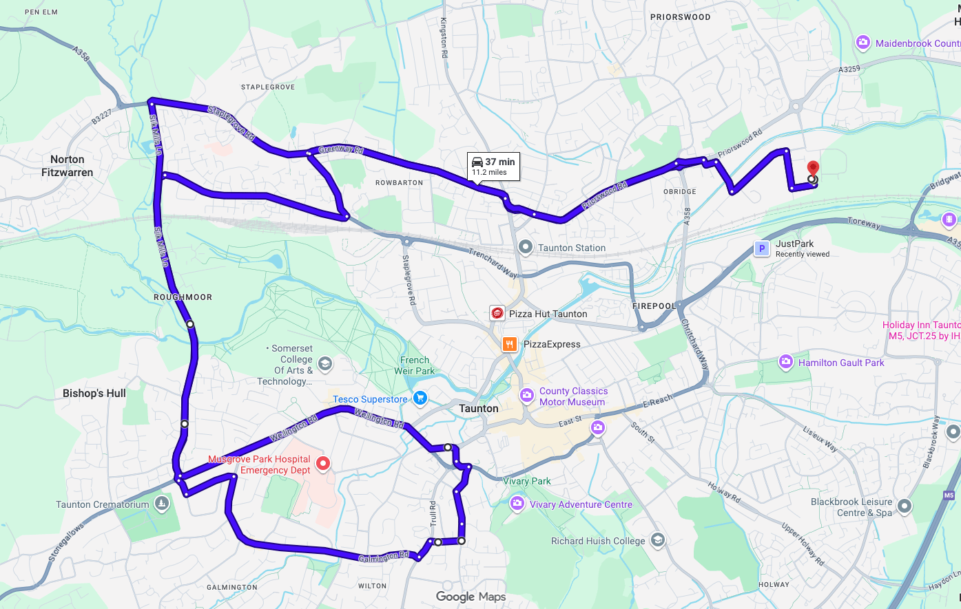 Practise real driving test routes in Taunton before your exam – open directly in Google Maps