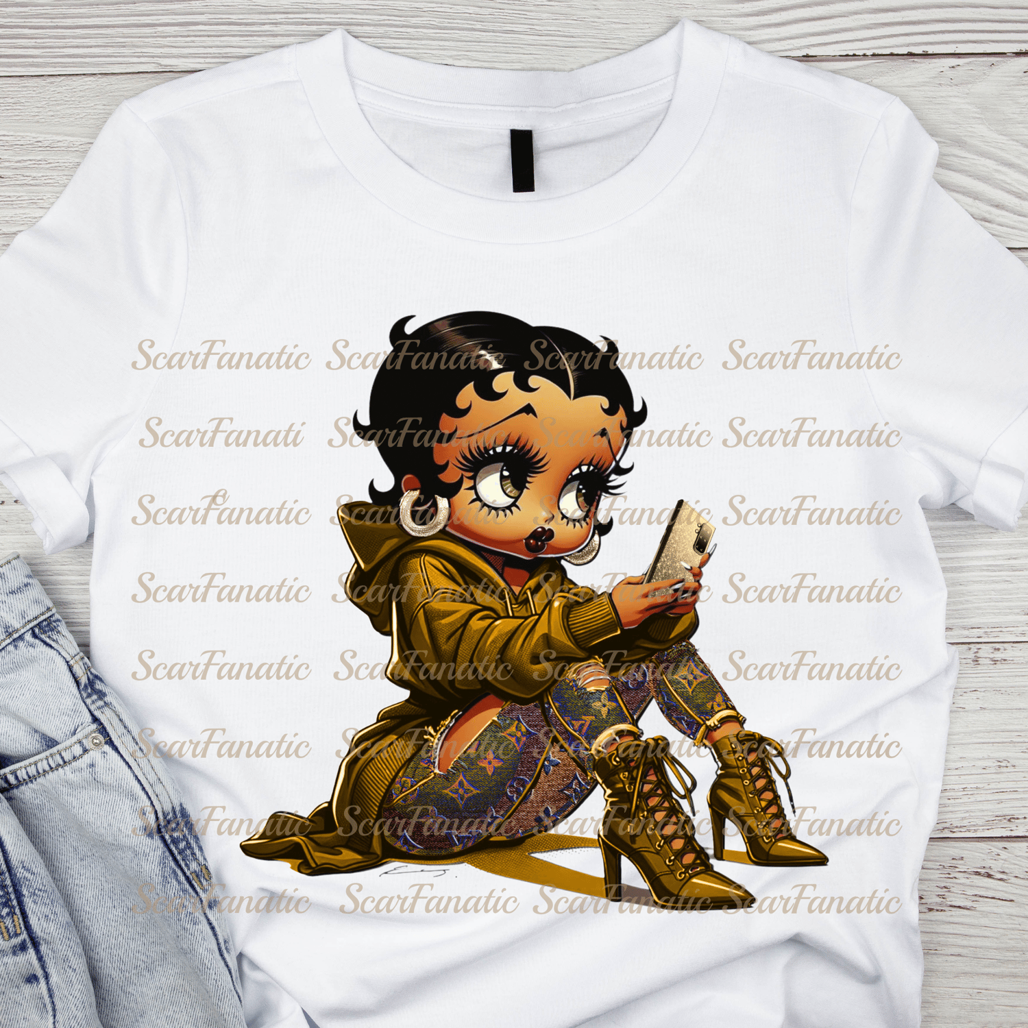 Black Betty Boop in Mustard Yellow Sweatshirt, VL Multicolor jeans/leggings, high heel boots, Sublimation, PNG, DTF, 300DPI, high resolution