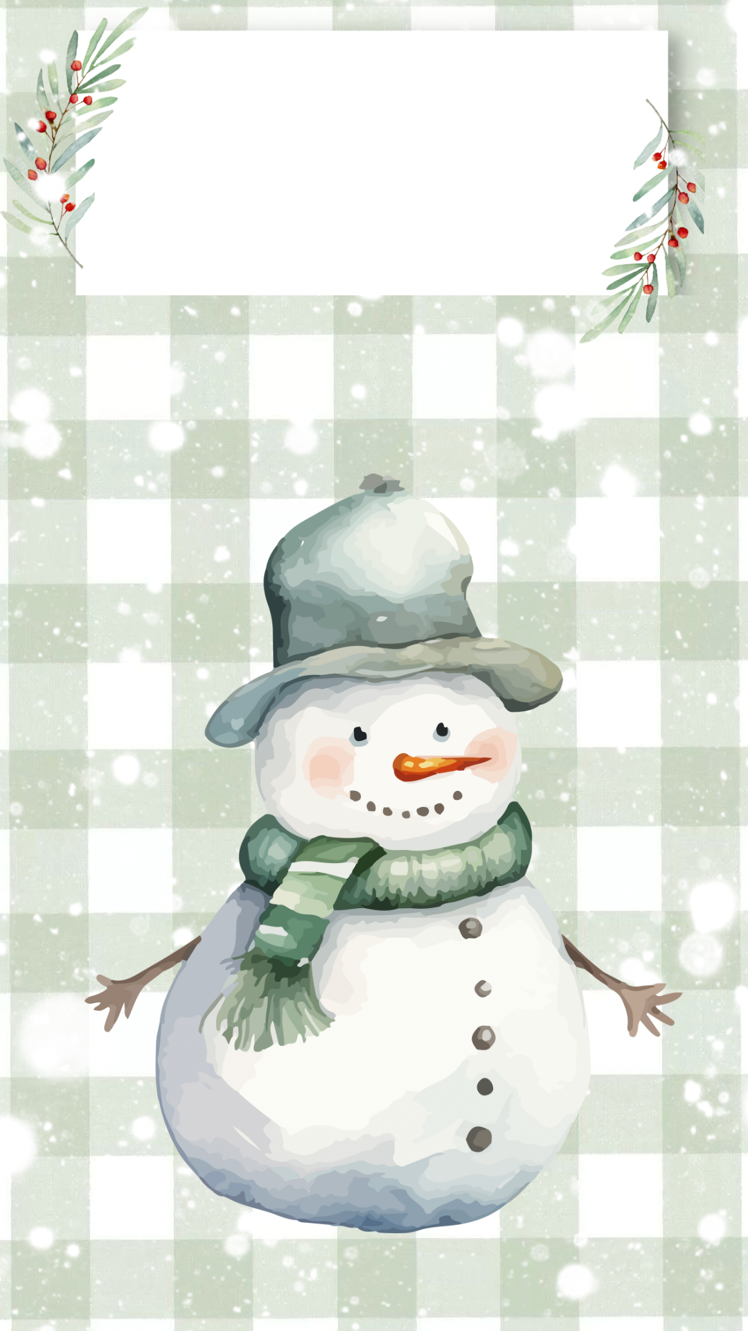 This cozy PNG design blends classic winter charm with a festive touch, ideal for lock screens and backgrounds during the holiday season. It features a green gingham pattern, a soft-hued snowman, and a time display framed with holly berries.