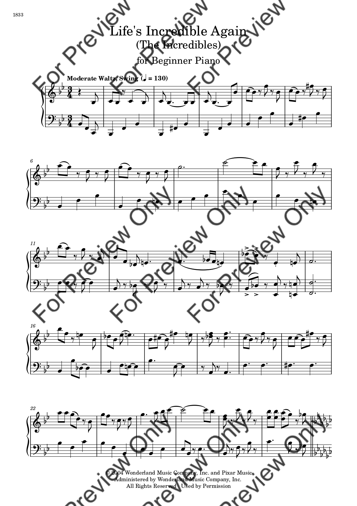 Life's Incredible Again from The Incredibles by Michael Giacchino. Arrangement for Beginner/Easy Piano. With Full Score. Have fun!