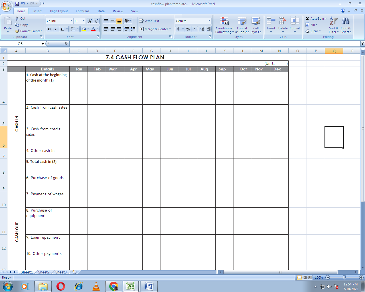 Cash Flow Planning Template (Monthly Cash Inflow & Outflow Tracker)