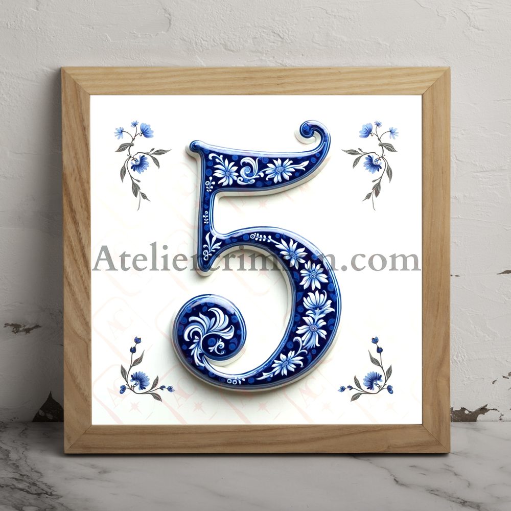 Number 5 delftware blue tiles Download Now this high quality AI-generated image, perfect for adding a touch of tranquility and creativity to any space.