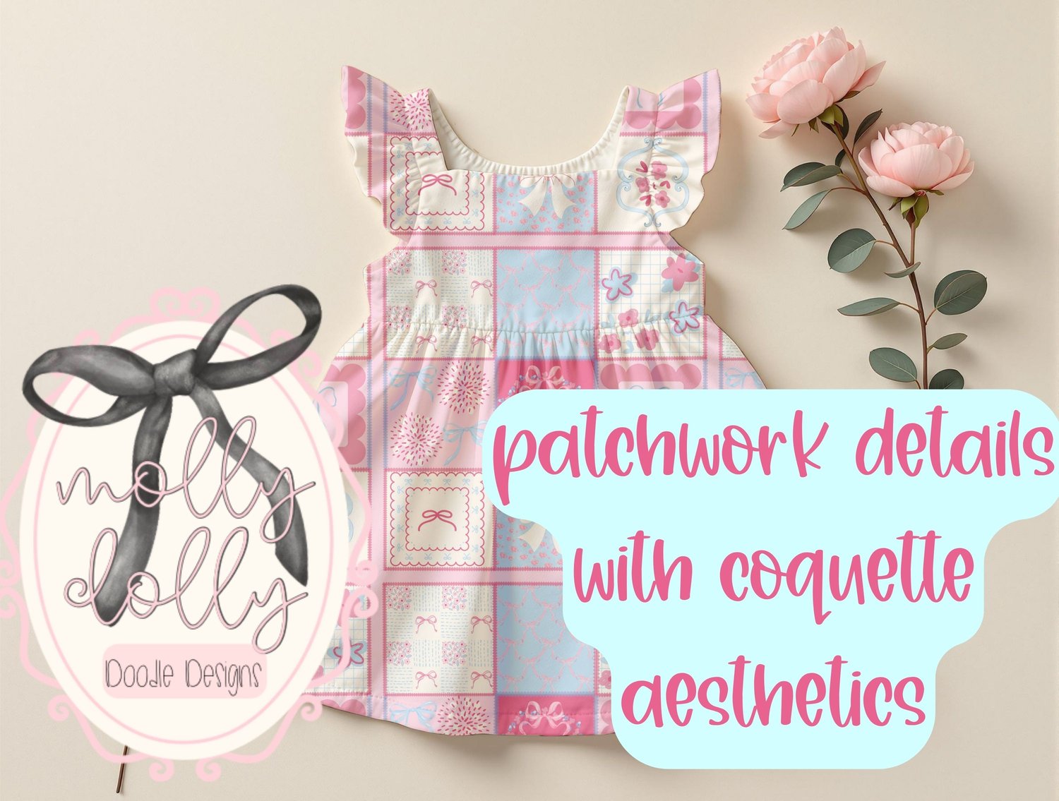 Bring a sweet, vintage-inspired charm to your next project with this Seamless Coquette Patchwork Digital Pattern. Featuring a delicate blend of pinks, baby blues, florals, gingham, and bows, this design captures the dreamy essence of the coquette aesthetic with a handcrafted, doodle-style touch.
