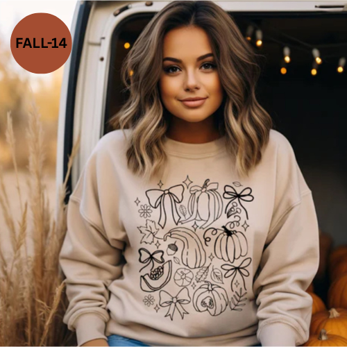 Pumpkin Doodle Sweatshirt – Cute Fall Aesthetic Crewneck | Gildan Unisex