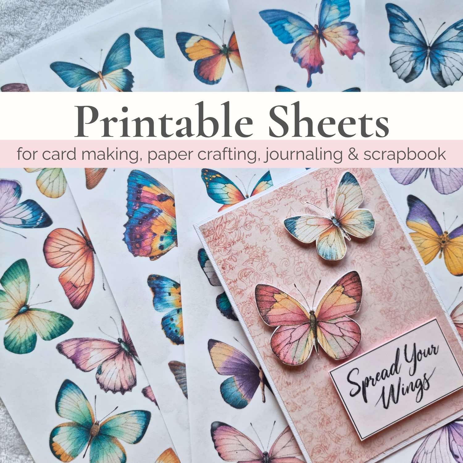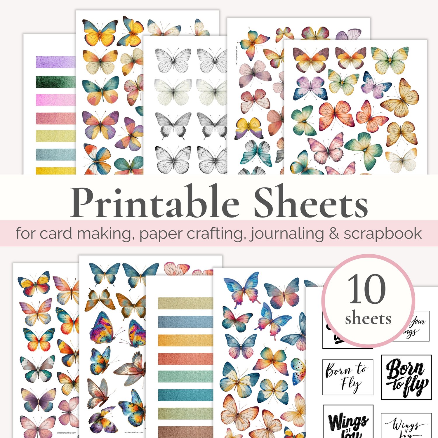 Each butterfly comes in a textured, natural style, and each designs include pairs in slightly different sizes — perfect for layering and creating a 3D effect. Just print, cut, and add them to your creative projects. For extra creativity, I’ve included a sheet of greyscale butterflies so you can create your own color combinations.