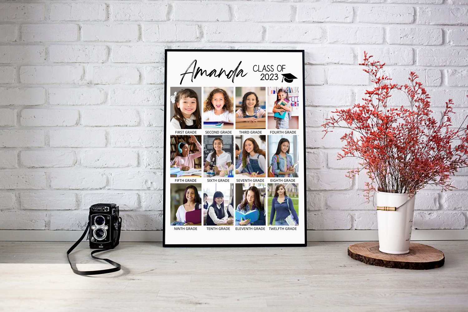 DIGITAL Custom 12 photos Graduation Class of 2023 Photo Collage Template, Printable Graduate Photo Poster, Through The years Board