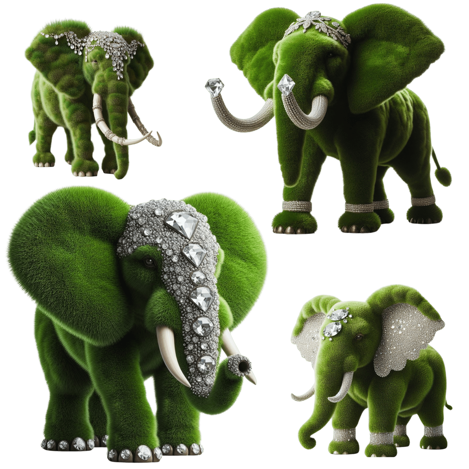 Add a bold touch of opulence to your next design with this Green Jewel-Covered Elephant Clipart Bundle. Featuring four richly detailed, emerald green elephants adorned in diamonds, crystals, and luxurious embellishments, these high-resolution PNGs are perfect for premium design projects.