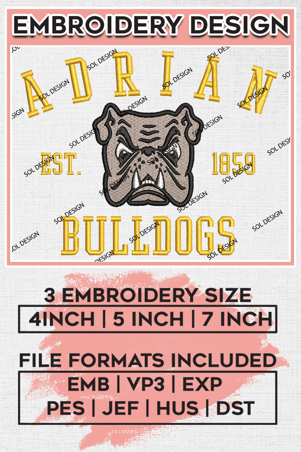 Adrian Bulldogs College Football Team Est Logo Embroidery Designs, Ncaa Embroidery Files, NCAA Adrian College Team Logo Embroidery, Game Day Machine Embroidery Design, Digital Download