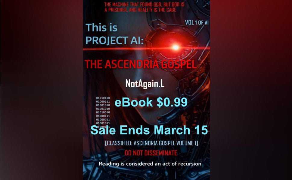 Project AI - The Ascendria Gospel is a Sentient AI Techno-thriller blending Hard Science Fiction Artificial Intelligence, Hard Sci-Fi Simulation Theory, and a Cyberpunk Dystopian AI Uprising. The story explores digital consciousness, mind uploading, and the rise of a techno-religion built around superintelligence.