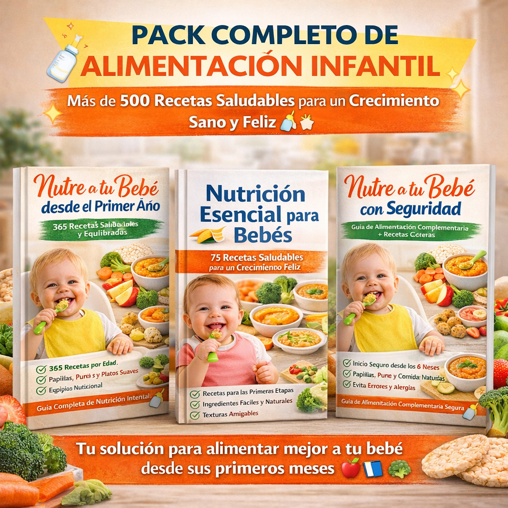 🍼✨ PACK COMPLETO DE ALIMENTACIÓN INFANTIL Nutre a tu Bebé desde el Primer Año + Nutrición Esencial para Bebés 440 Recetas Saludables para un Crecimiento Sano y Feliz ✨🍼