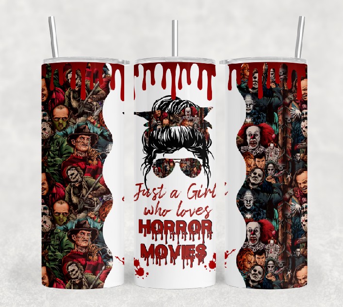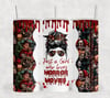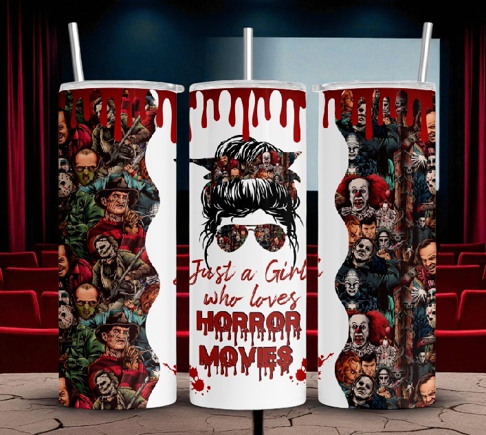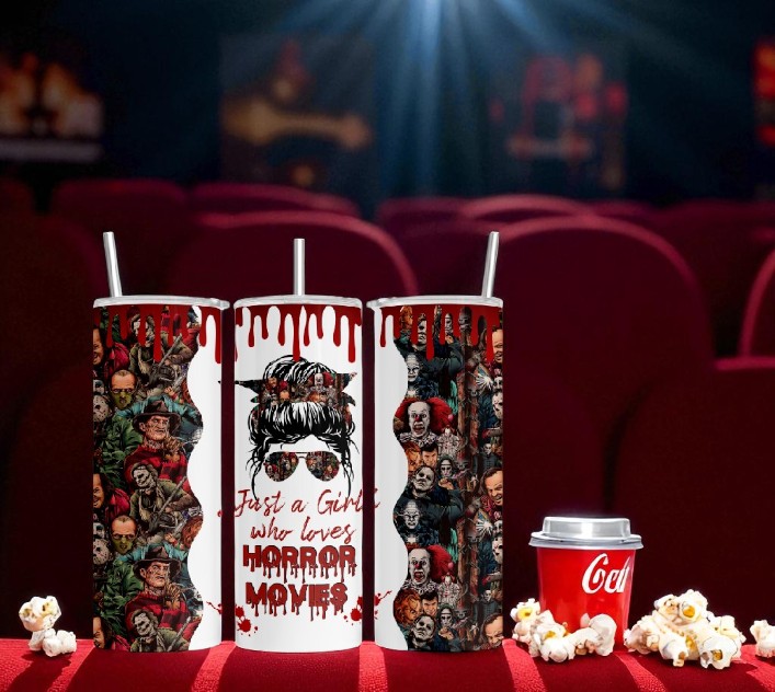 Calling all scream queens and horror fiends—this 20oz skinny tumbler is your new favorite sidekick. Featuring a fierce messy bun, blood-dripping fonts, and sunglasses reflecting iconic horror legends, it’s the perfect blend of spooky sass and slasher style.