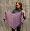 The shawl is constructed in three sections: a Centre Panel, a Left Wing and a Right Wing, all of which are worked flat. The Centre Panel is worked first, starting with an I-Cord, then with a repeating textured pattern worked top down. Towards the end of this panel, decreases are worked to taper the panel to a point. Along each side of the Centre Panel, stitches are picked up to work each wing. The wings feature a similar textured panel and each are also tapered to a point, to form a V-shaped shawl.