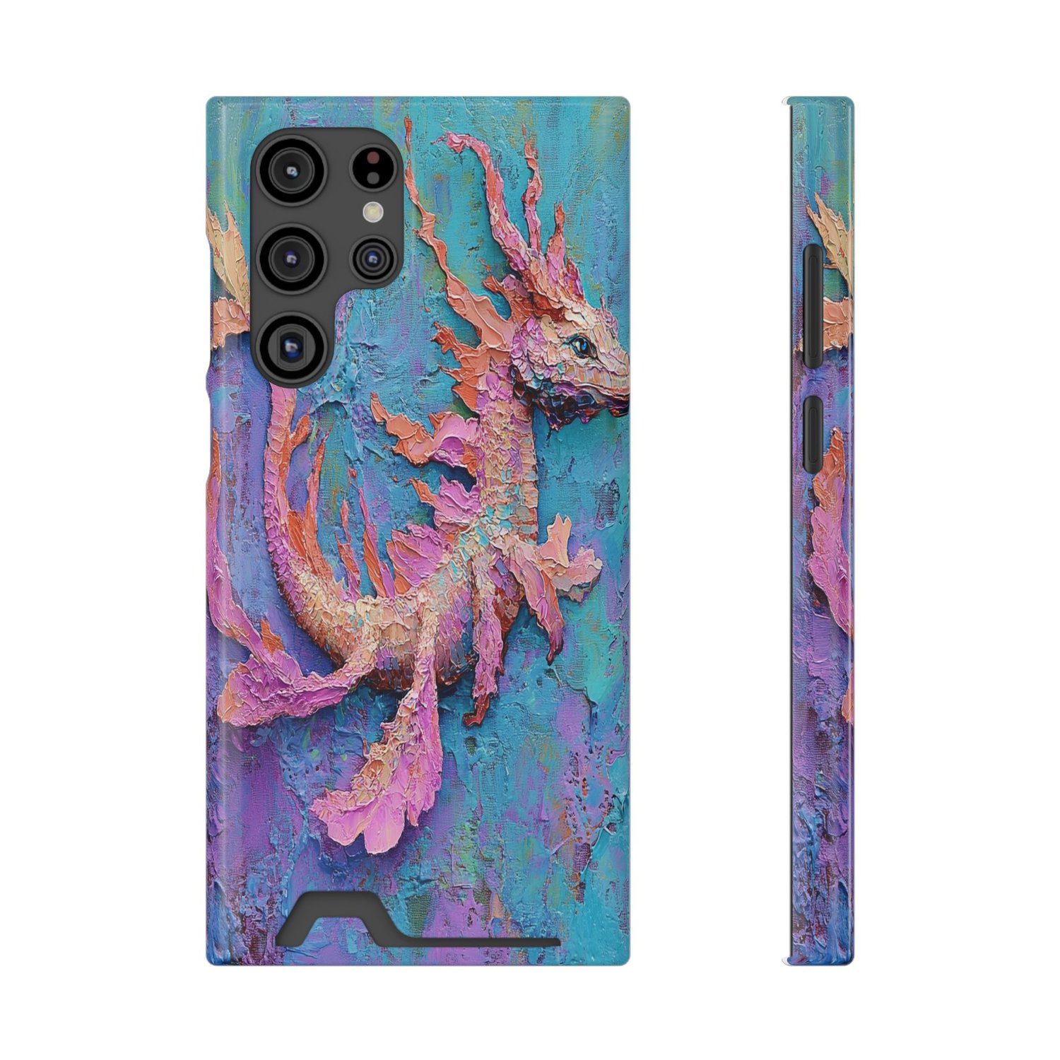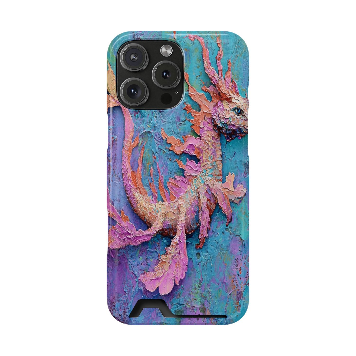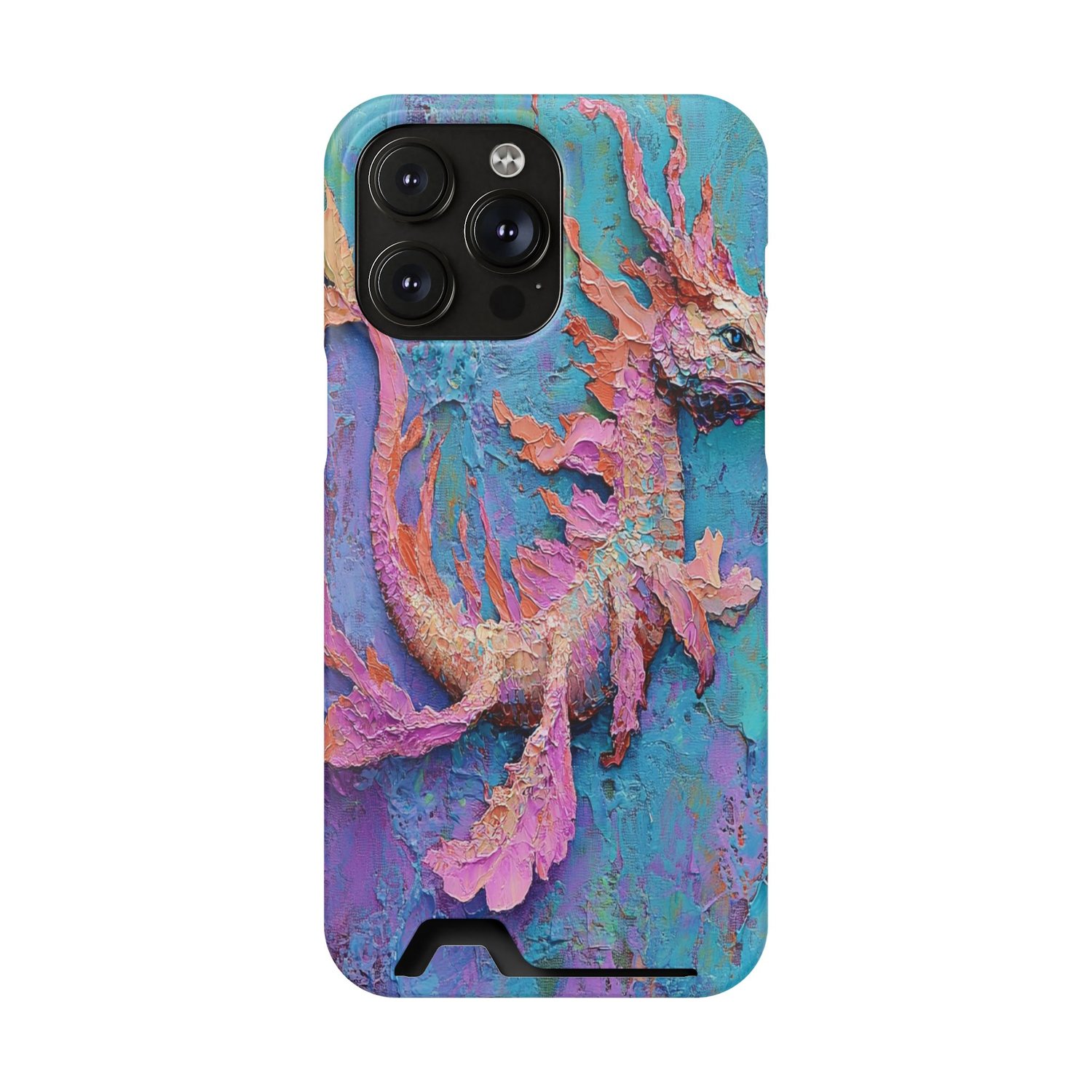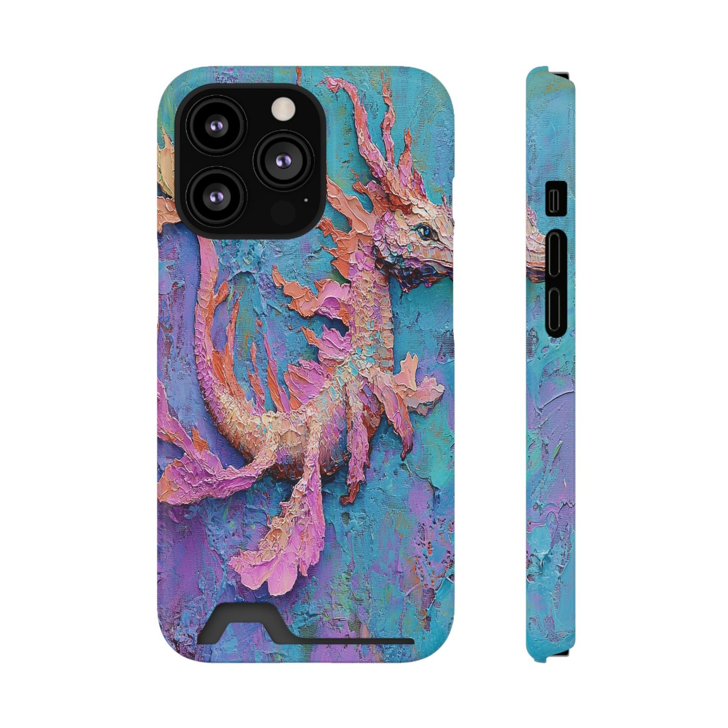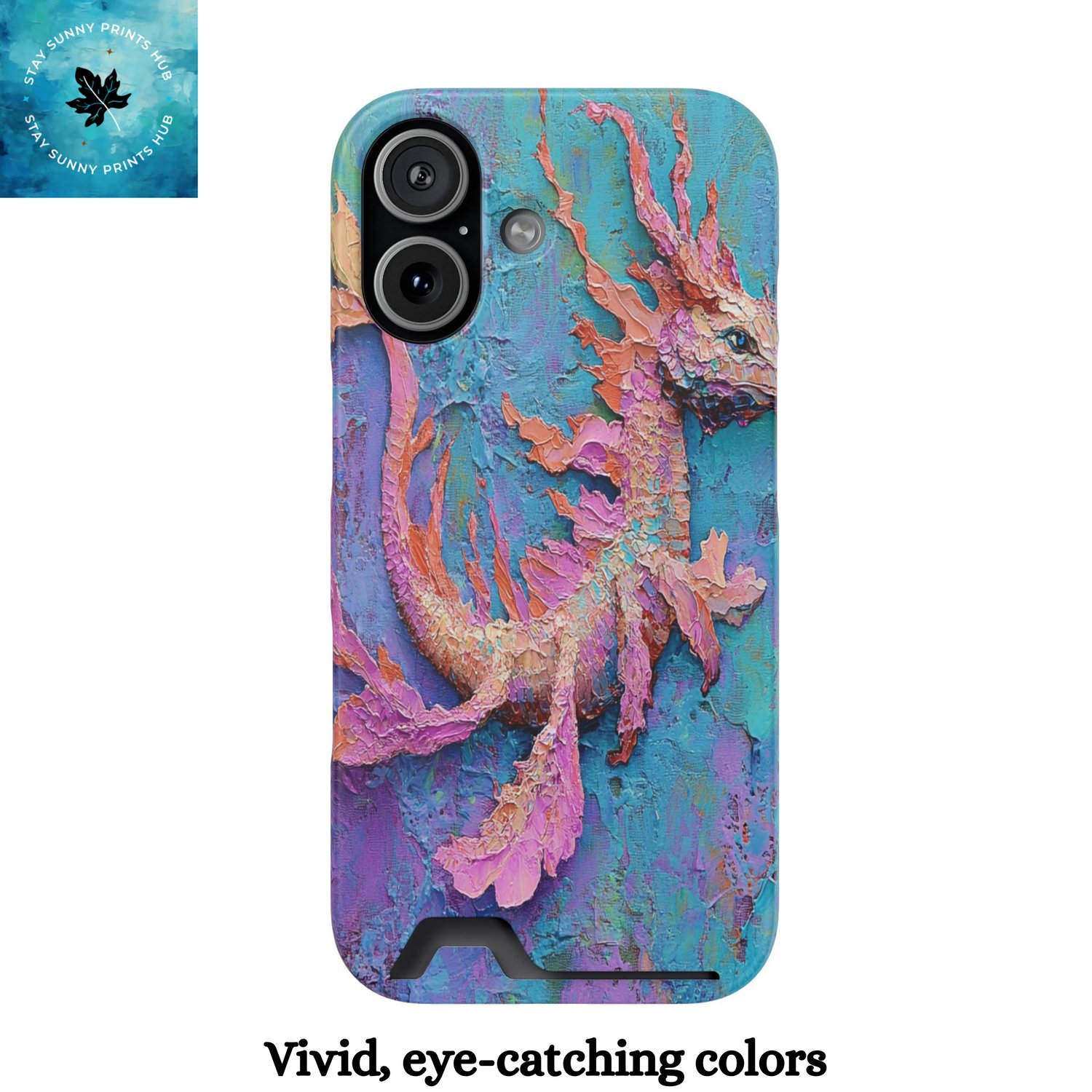 Step into a magical underwater world with Aurora Leafy Sea Dragon, featuring the mystical leafy sea dragon illustrated against a vibrant seafoam cyan and magenta fantasy backdrop. This dreamy, fantasy-inspired design brings elegance, color, and movement to your phone while keeping your essentials close with a built-in card slot.
