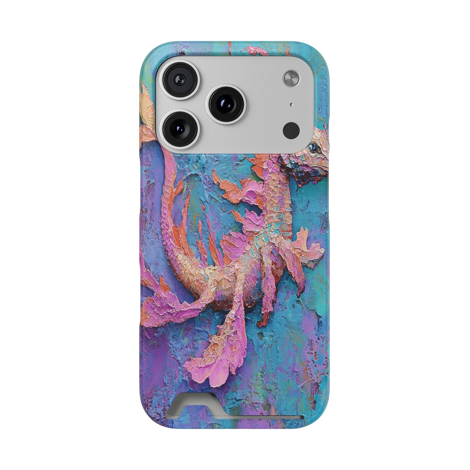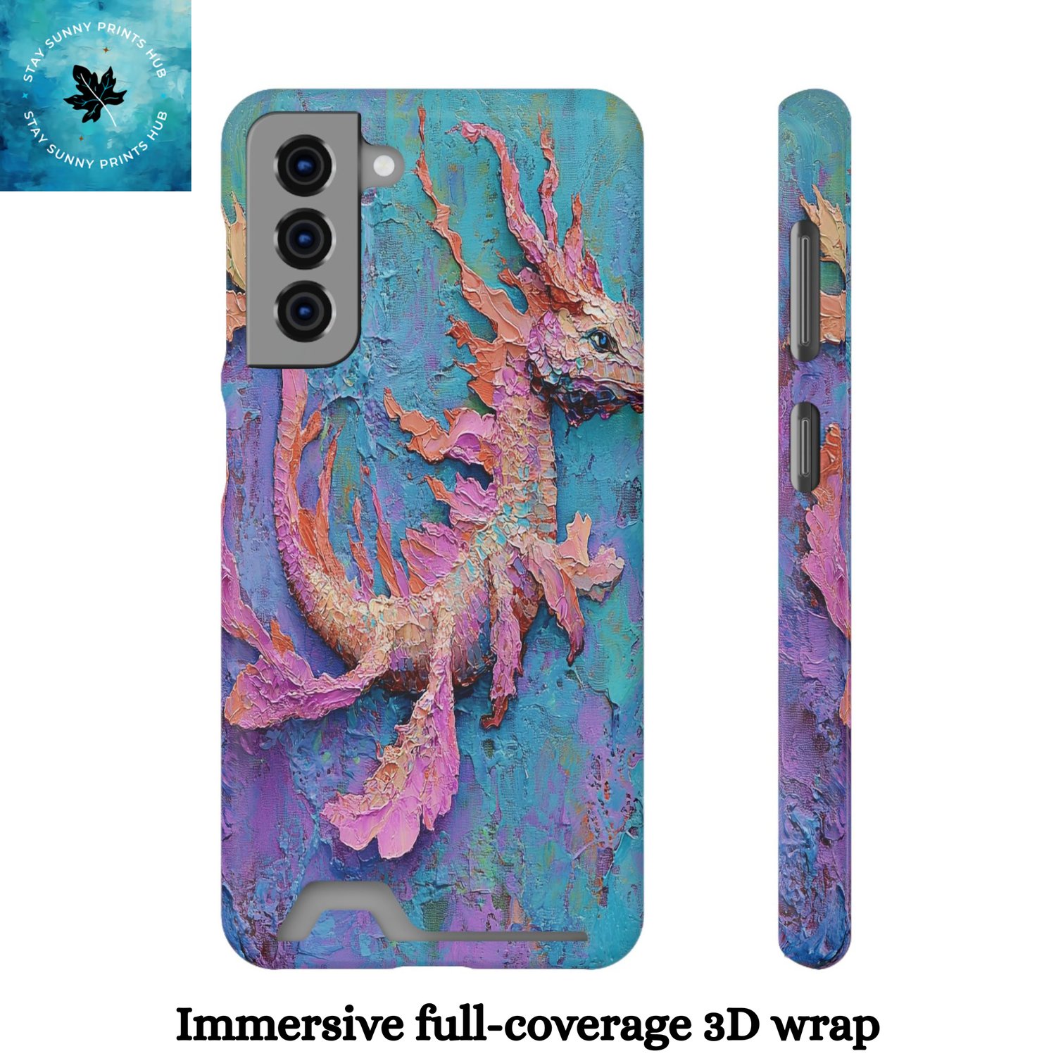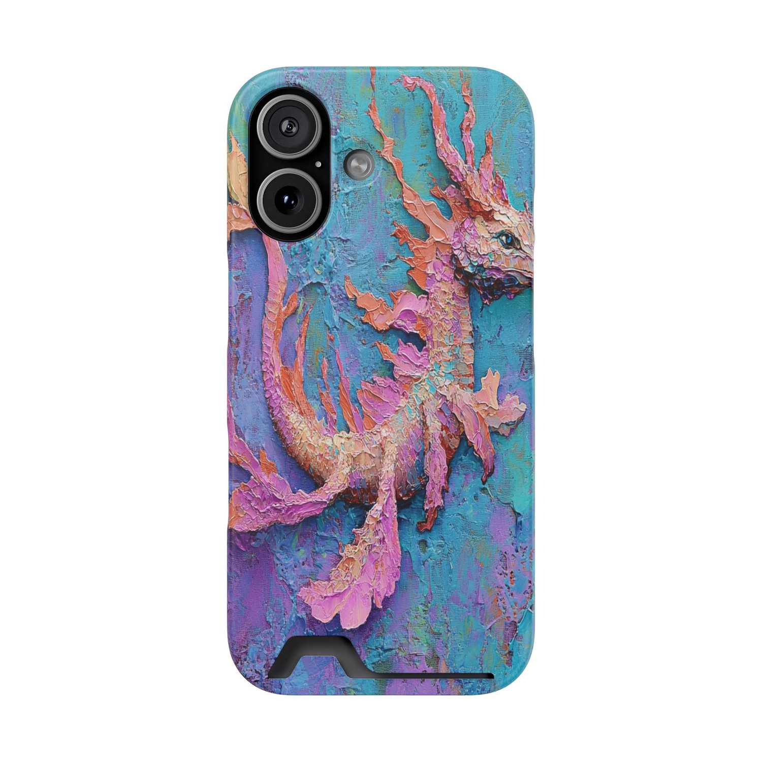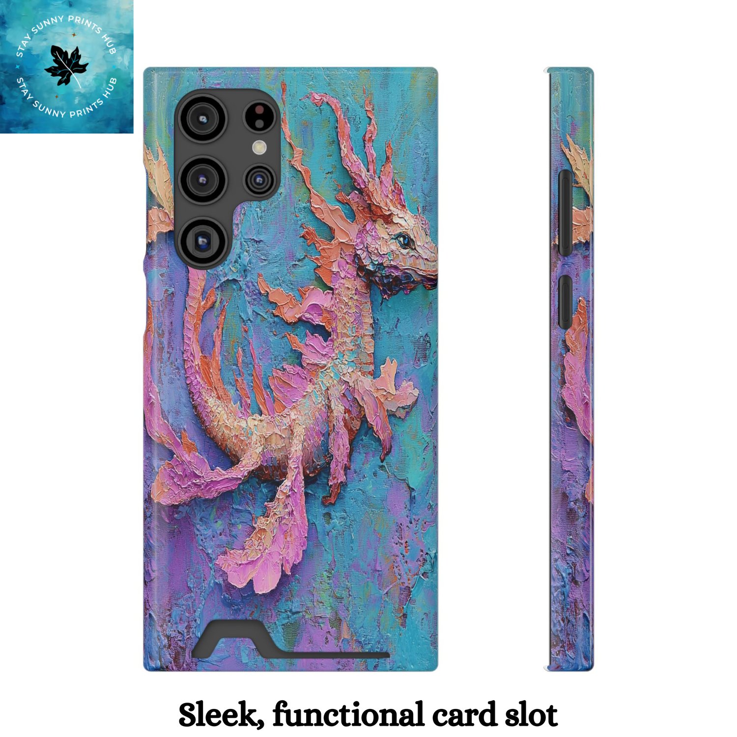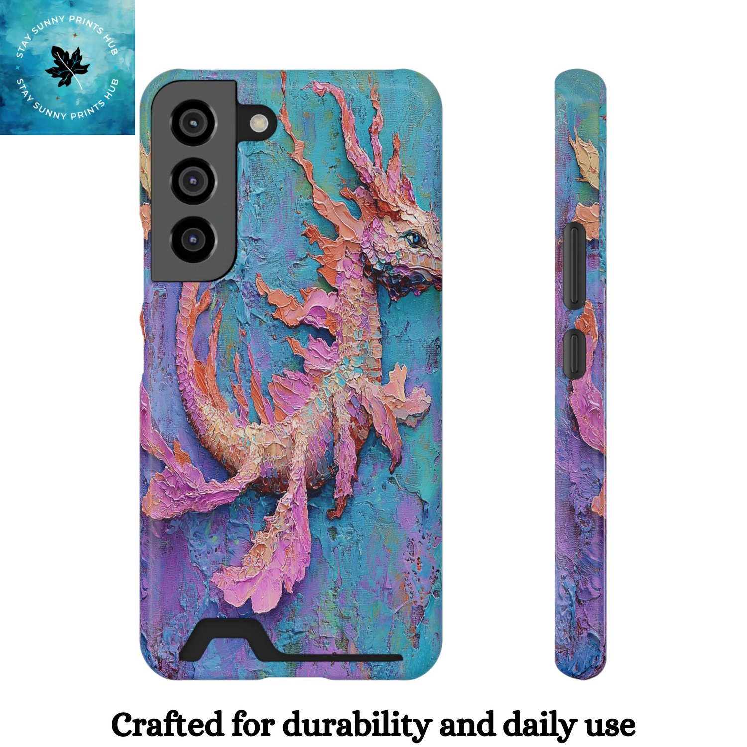 Step into a magical underwater world with Aurora Leafy Sea Dragon, featuring the mystical leafy sea dragon illustrated against a vibrant seafoam cyan and magenta fantasy backdrop. This dreamy, fantasy-inspired design brings elegance, color, and movement to your phone while keeping your essentials close with a built-in card slot.