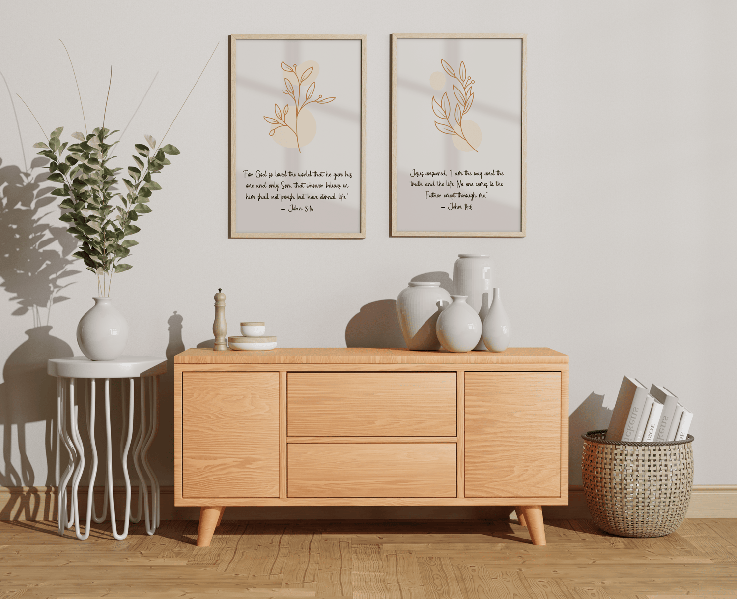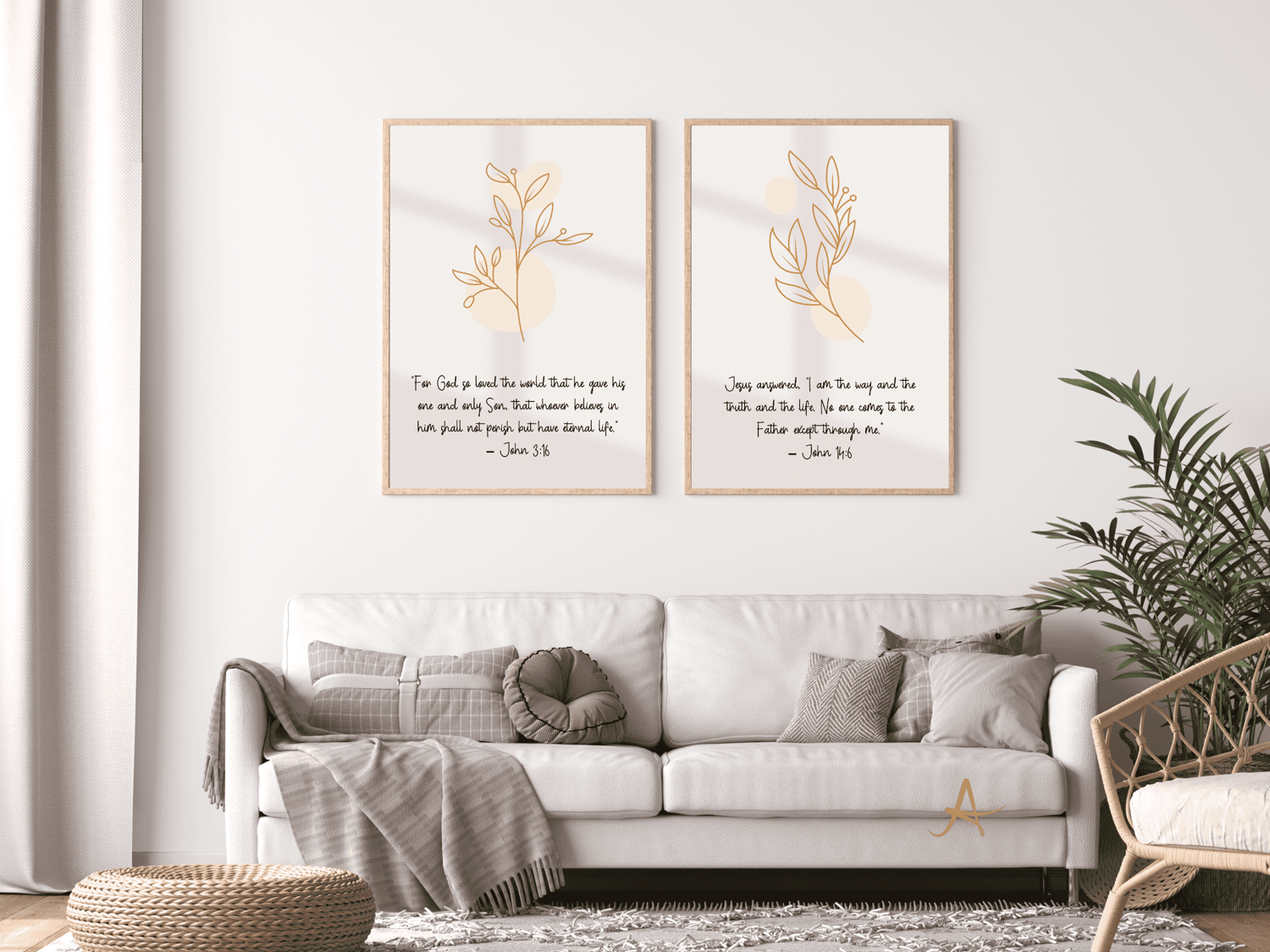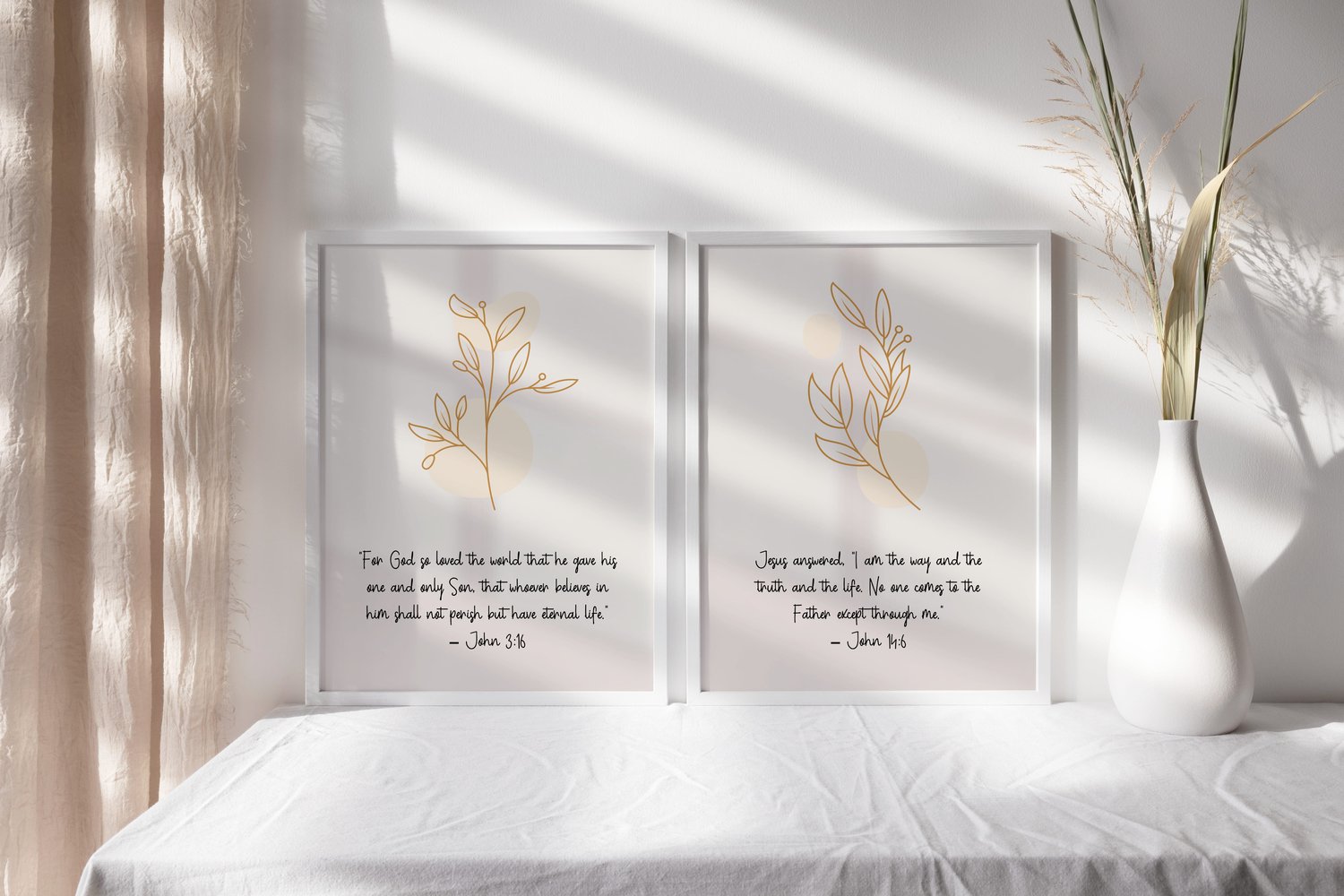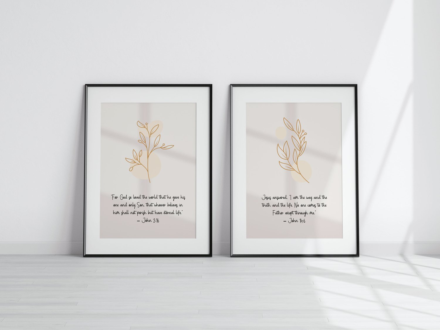 Set of 2 John 3:16 & John 14:6 Bible Verse Printable Wall Art Christian Poster