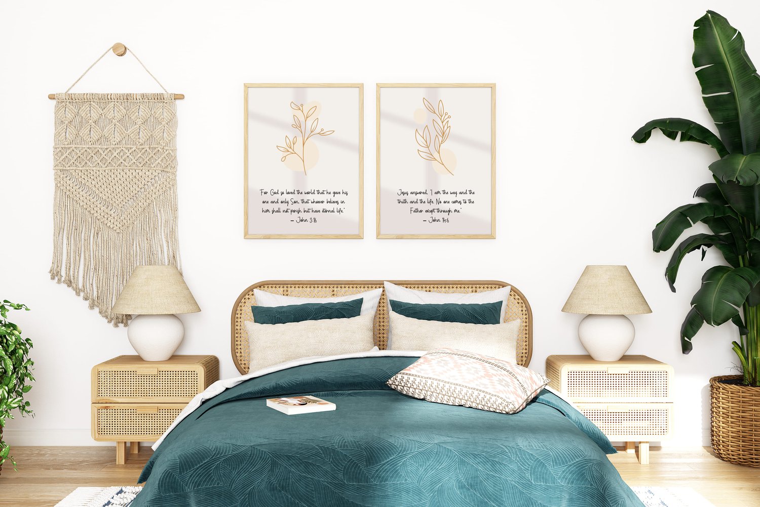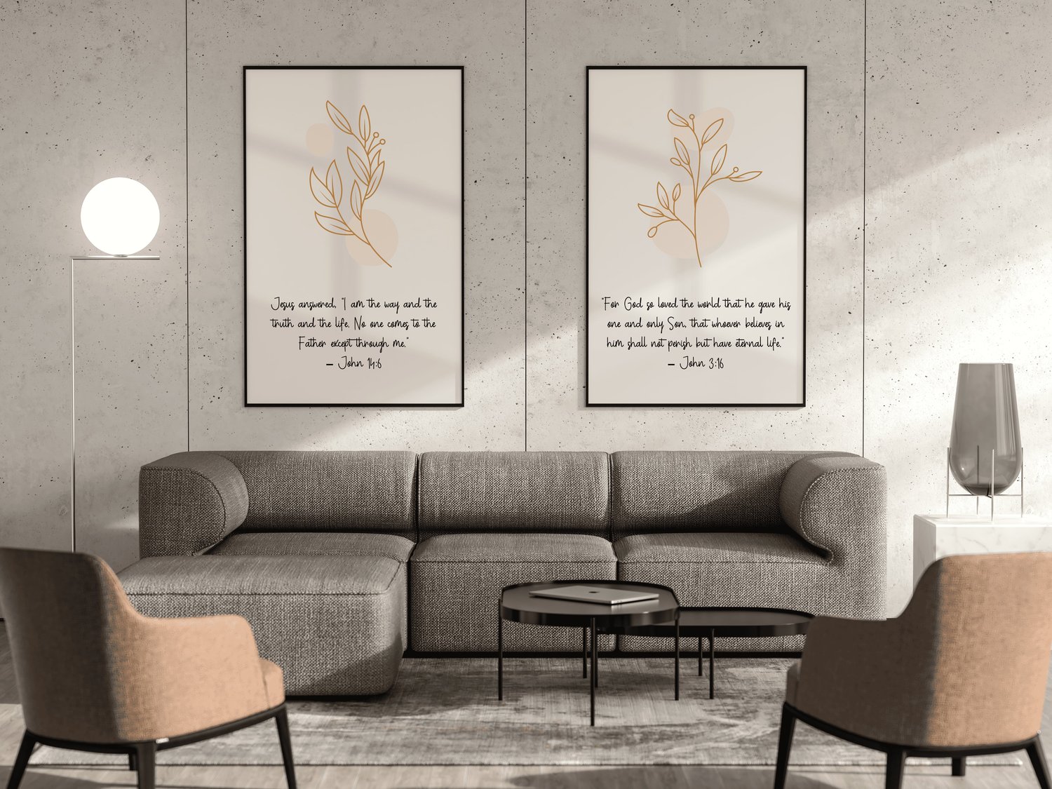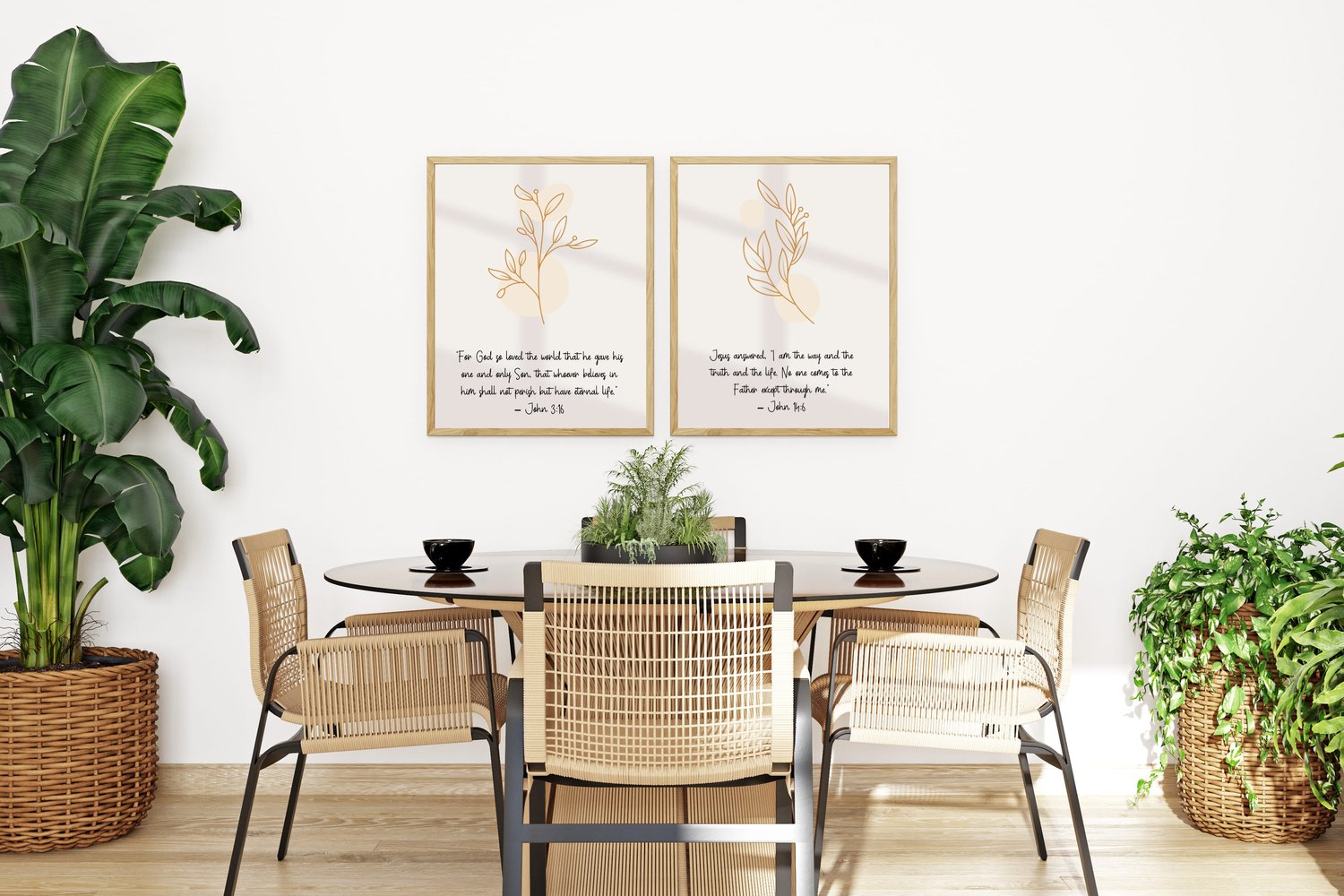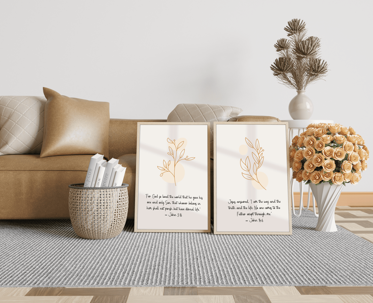 Set of 2 John 3:16 & John 14:6 Bible Verse Printable Wall Art Christian Poster