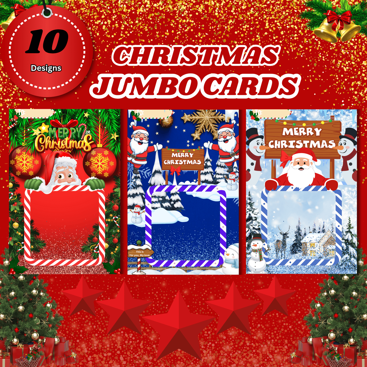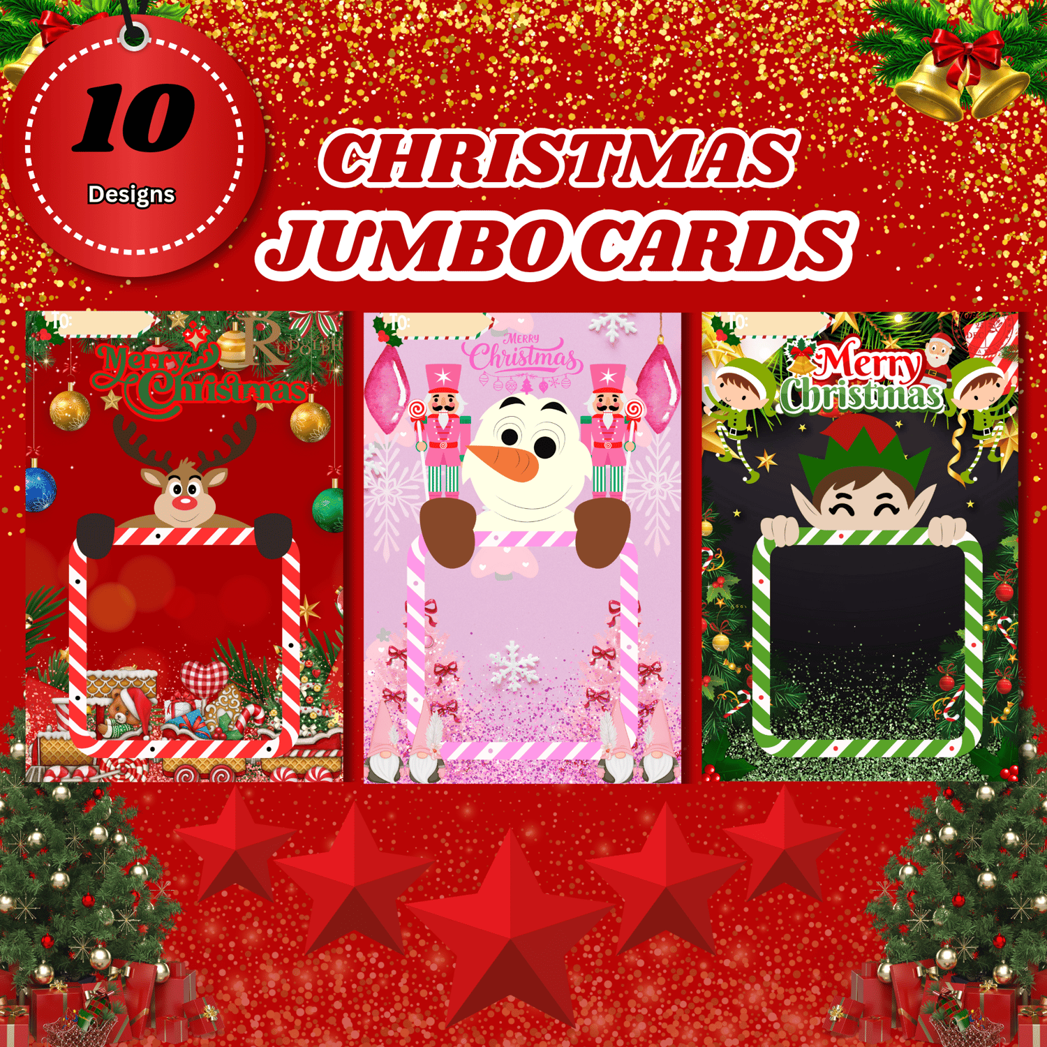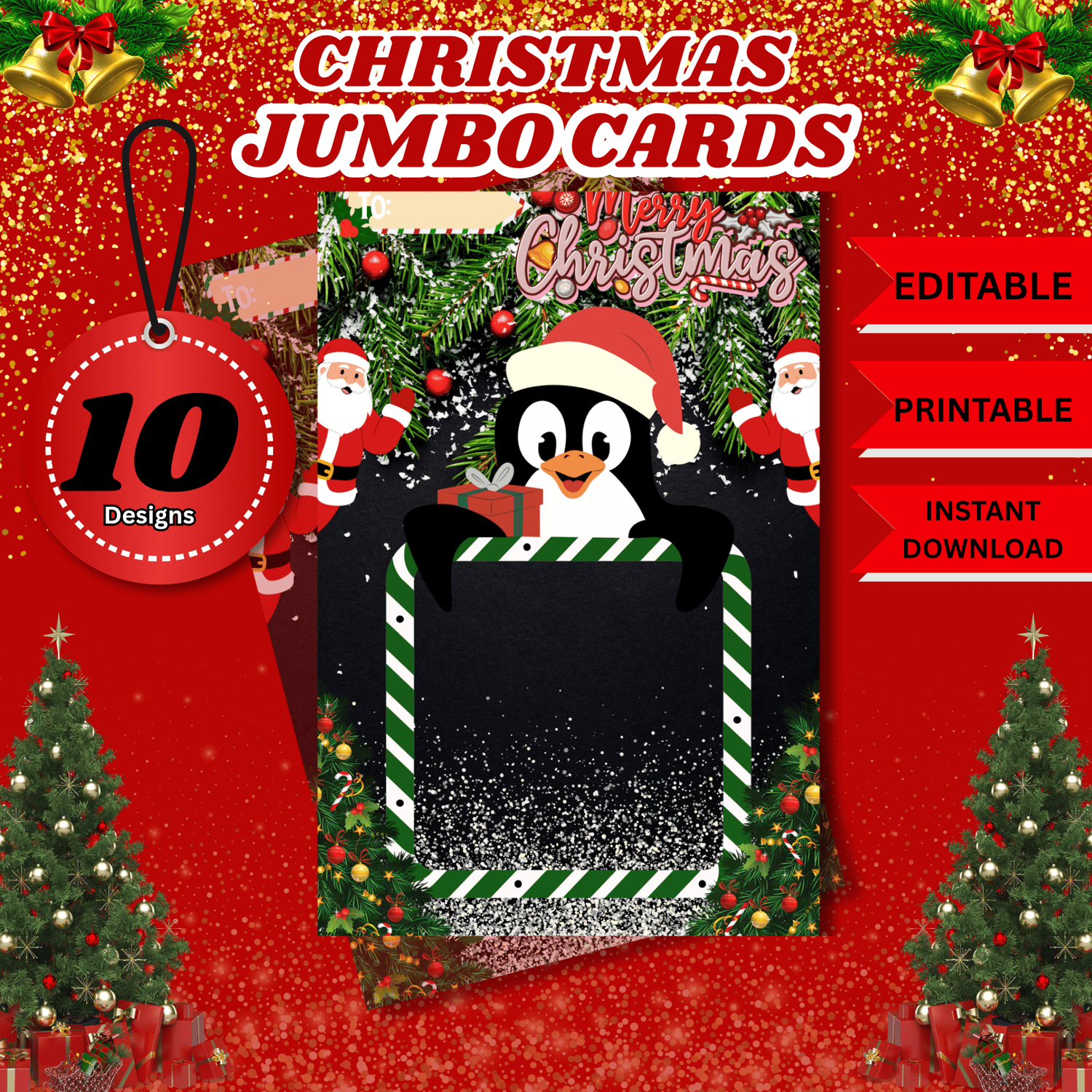 CUTE CHRISTMAS JUMBO CARDS | 10 DESIGN | READY TO PRINT | EDITABLE