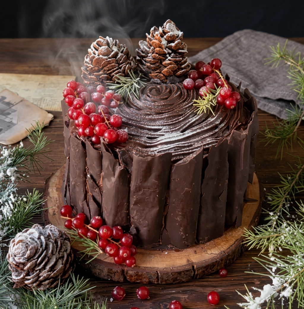 No-Crack Chocolate Yule Log Recipe – Easy Bûche de Noël with Festive Decorations (PDF)