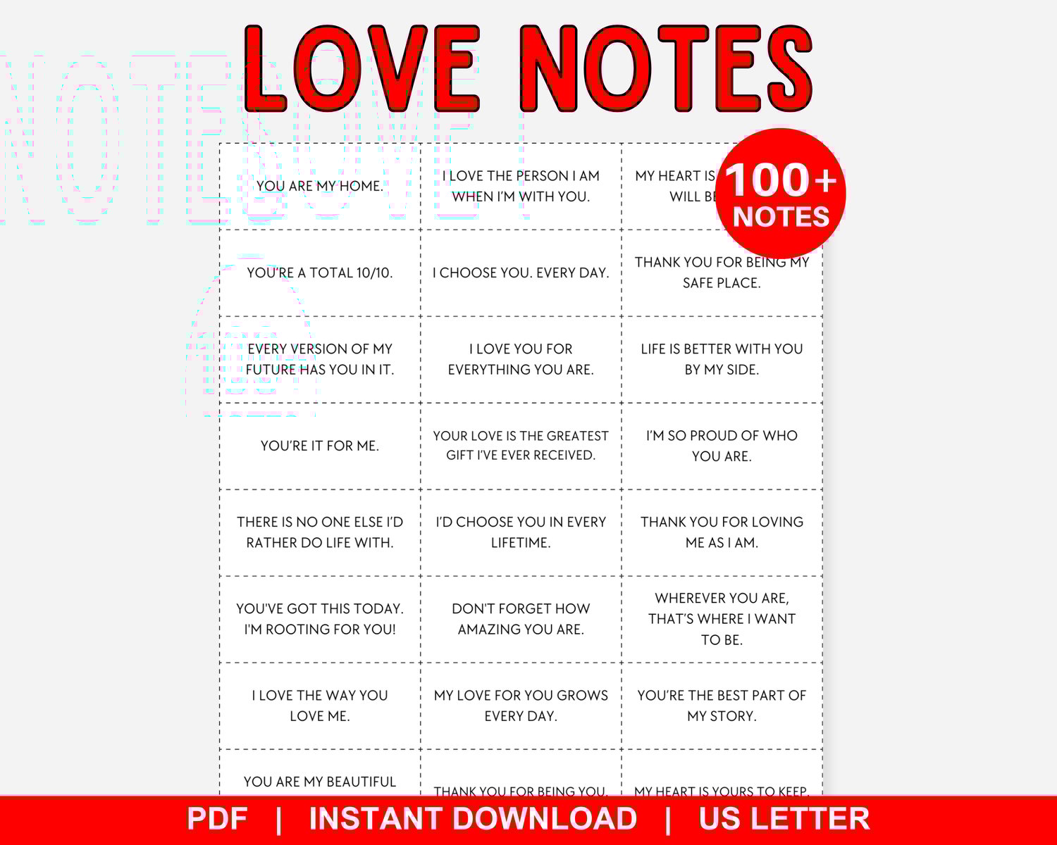 Love Notes, Love Notes for Him, Love Notes for Her, Mini Love Messages, Lunchbox Notes, Love Jar, Reasons Why I Love You, Valentines Day